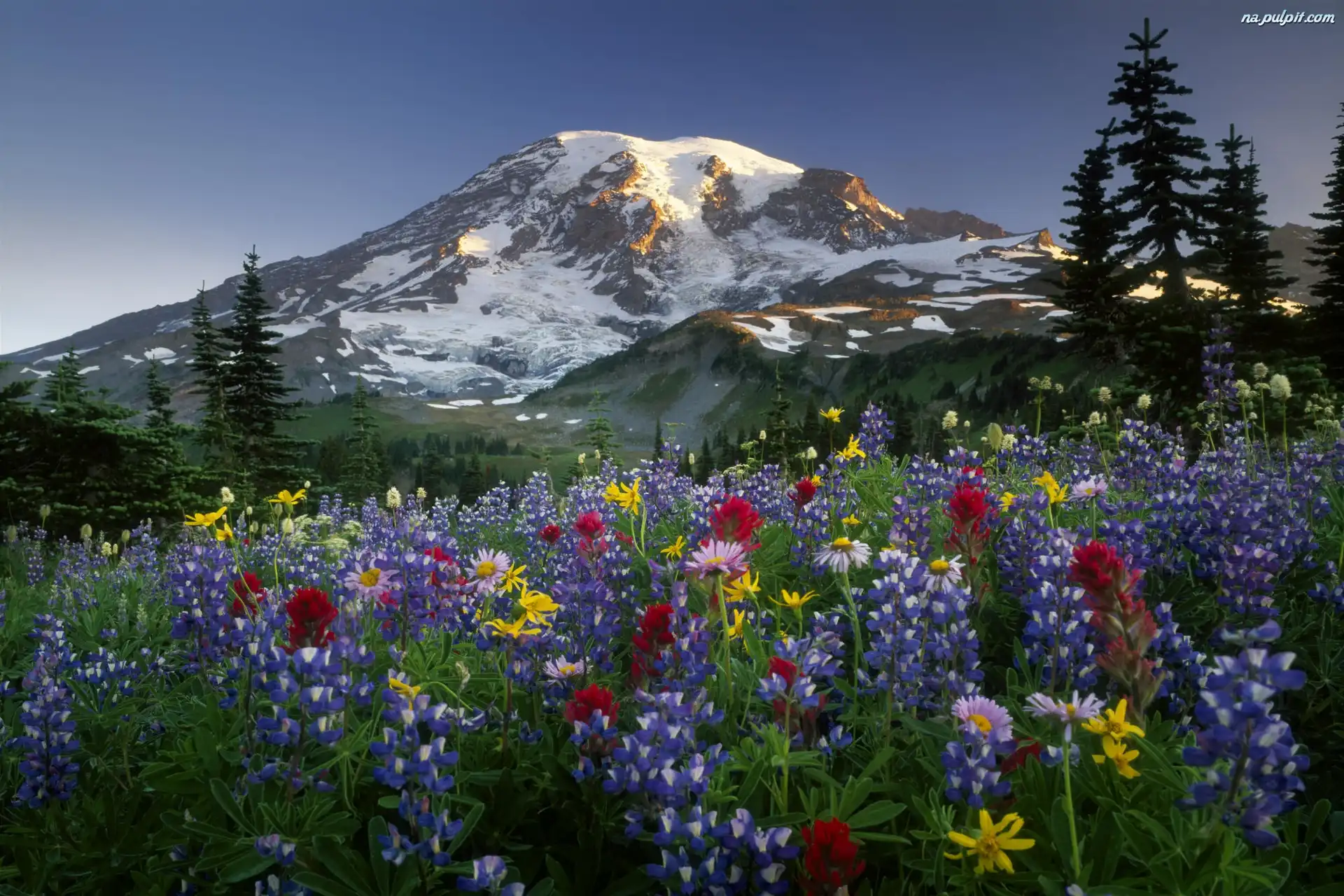 Drzewa, Kwiatki, Góry, Łubin Na Pulpit