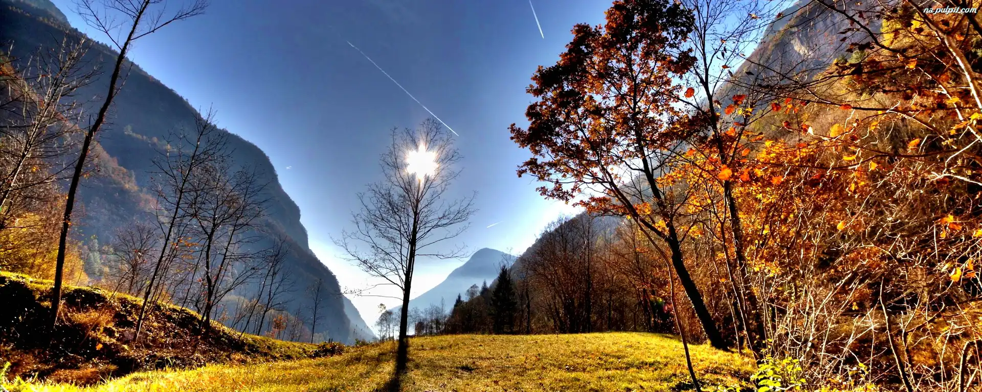 Drzewa, Promienie, Góry, Słońca Na Pulpit