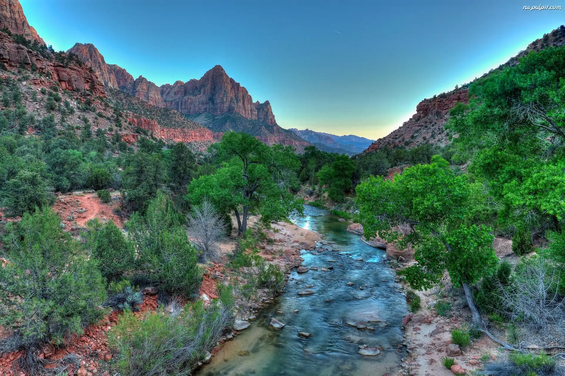 Drzewa, Rzeczka, Góry, Kamienie Na Pulpit