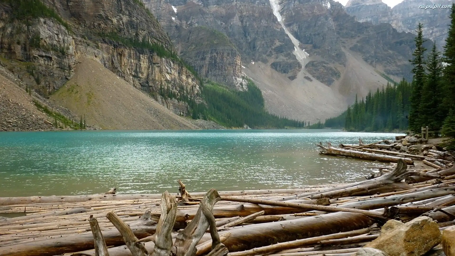 Drzewa, Rzeka, Góry, Połamane Na Pulpit