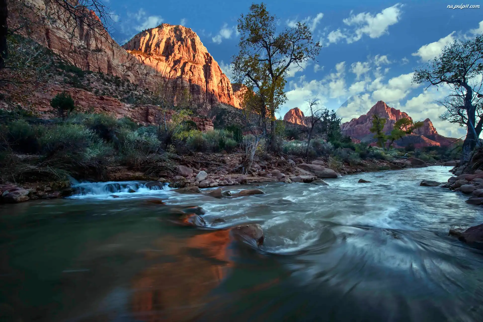 Drzewa, Skały, Góry, Rzeka Na Pulpit
