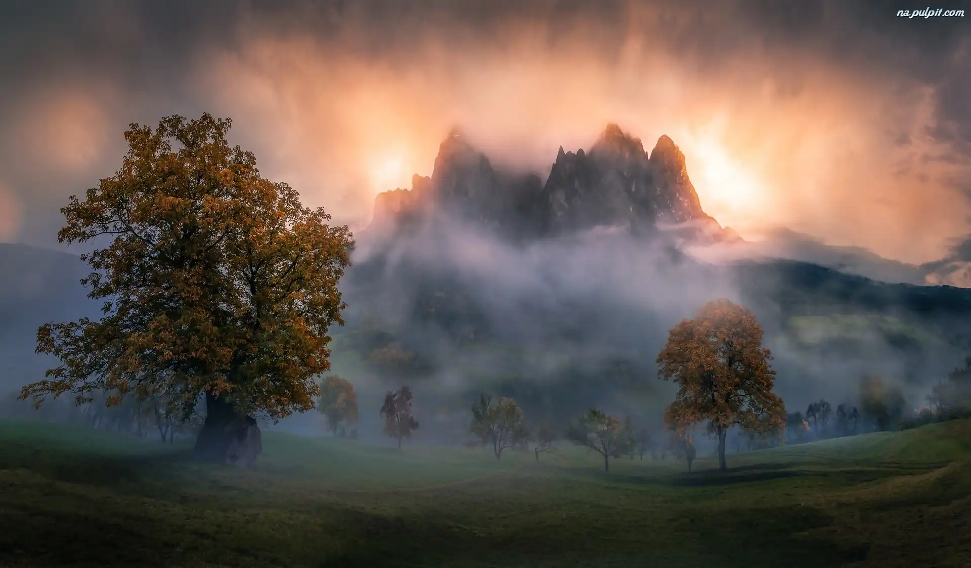 Drzewa, Szczyty, Góry, Mgła Na Pulpit