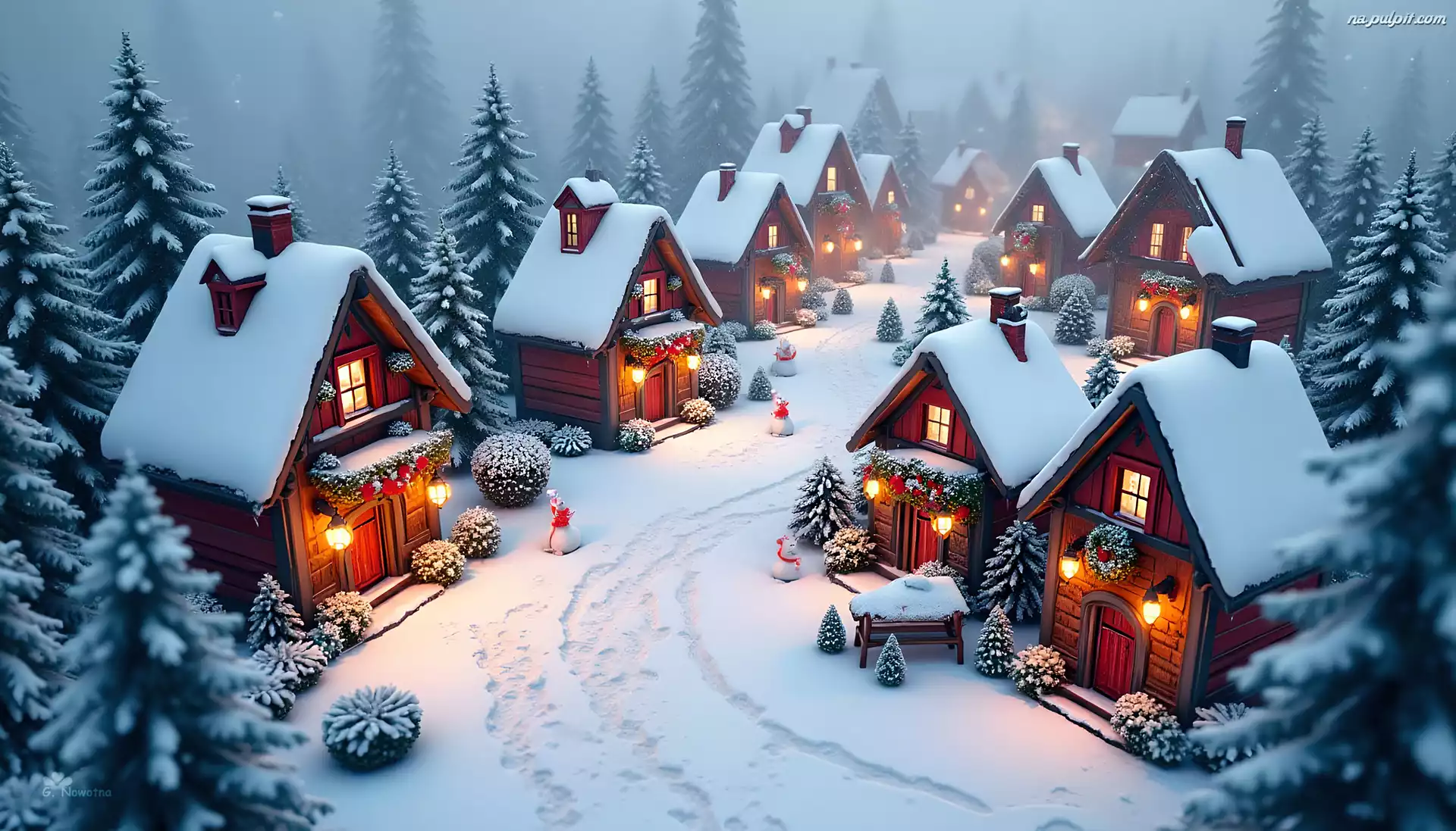 Choinki, Domy, Zima, Drzewa, Wioska, Grafika Na Pulpit