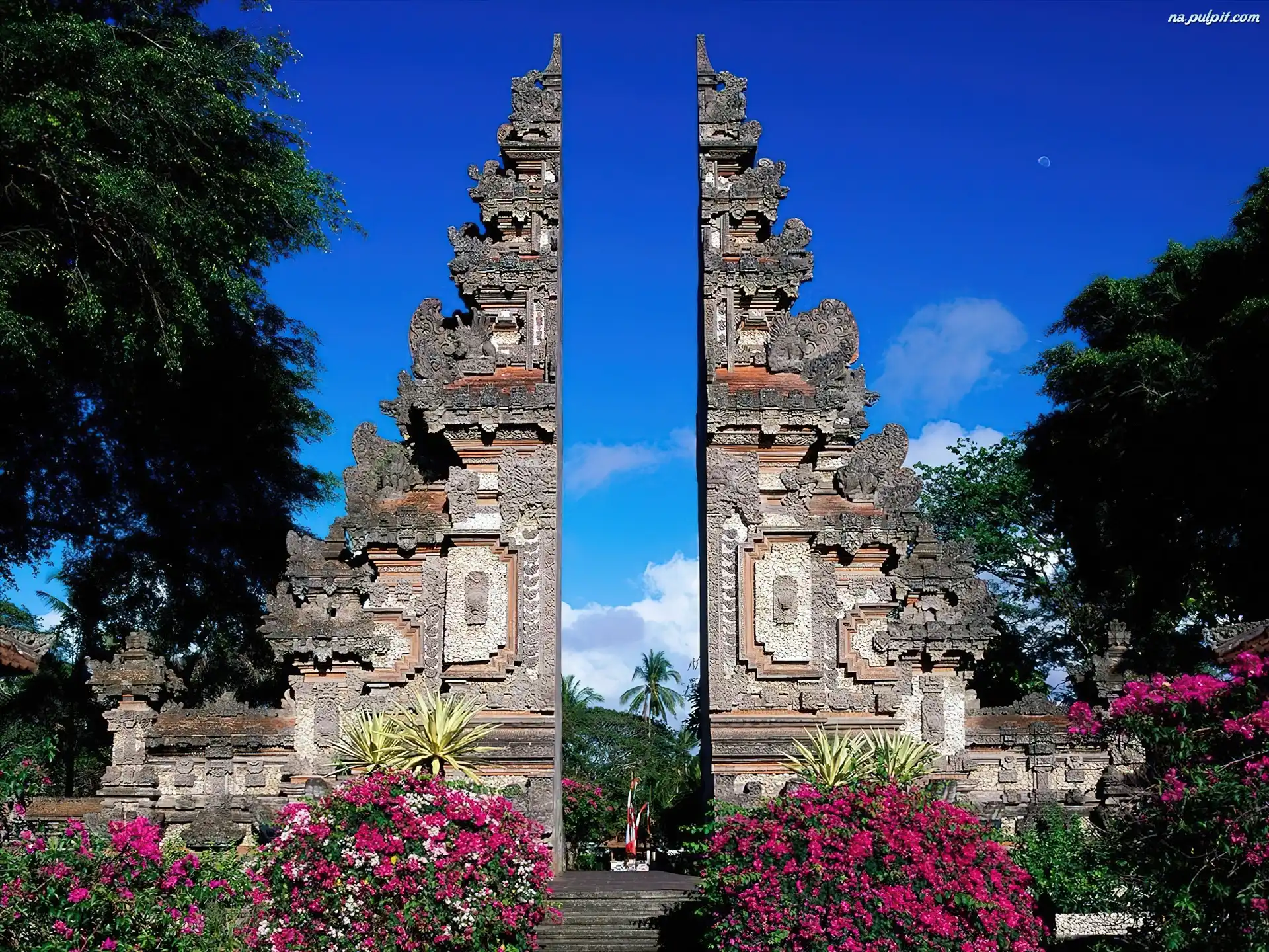 Drzewa, Murki, Bali, Indonezja, Kwiaty Na Pulpit