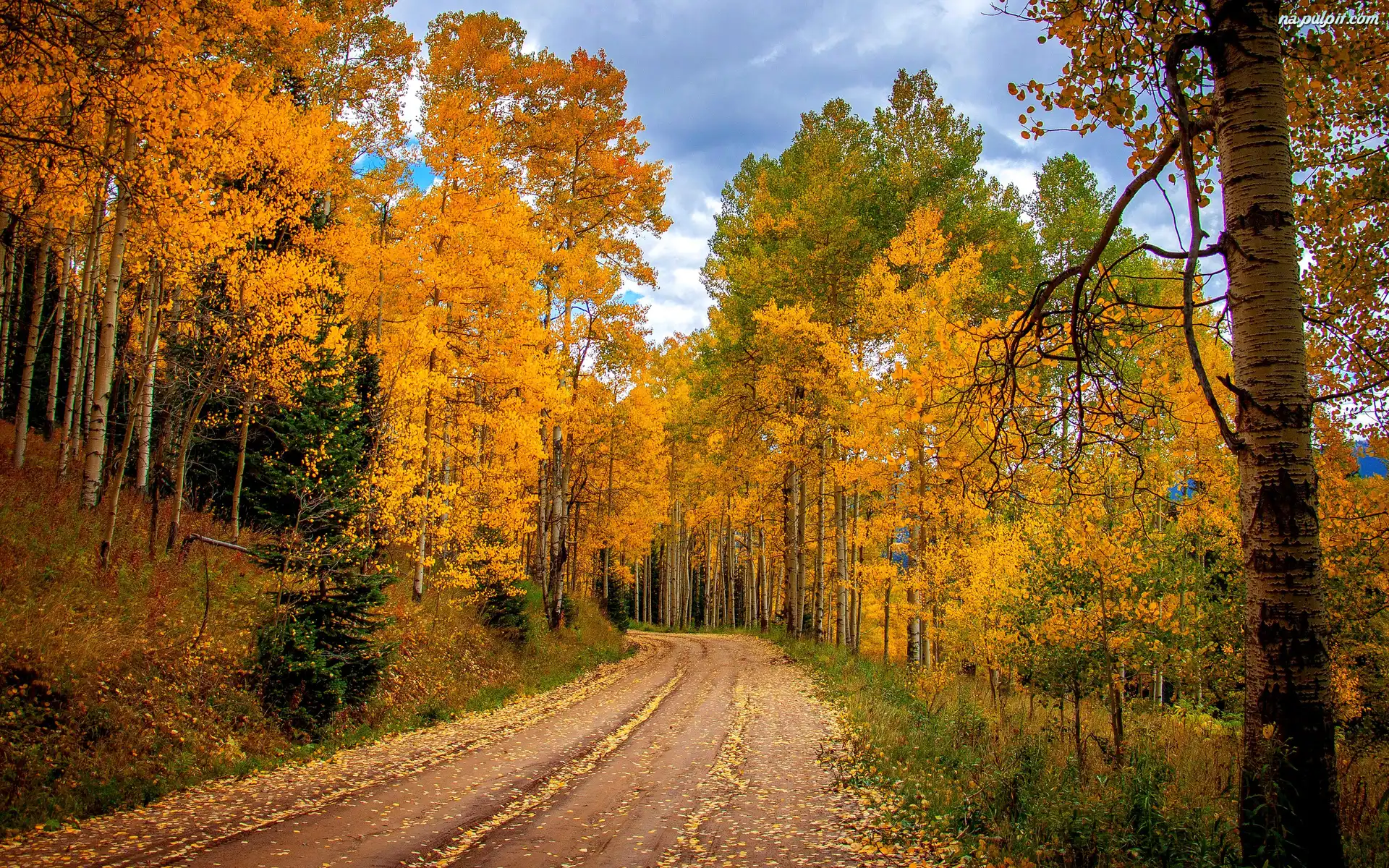 Drzewa, Droga, Jesień, Las Na Pulpit