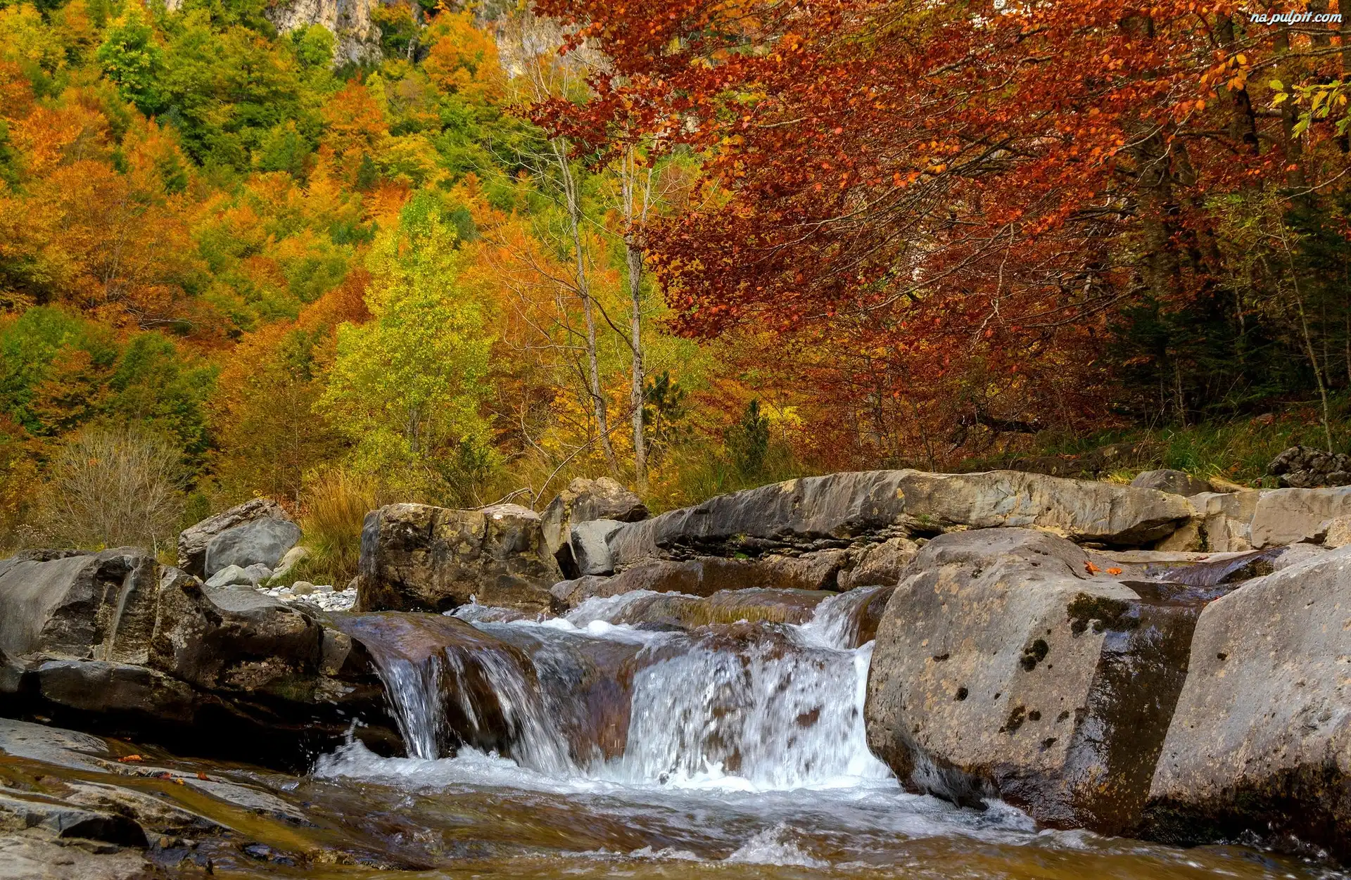 Drzewa, Las, Kamienie, Jesień, Rzeka Na Pulpit