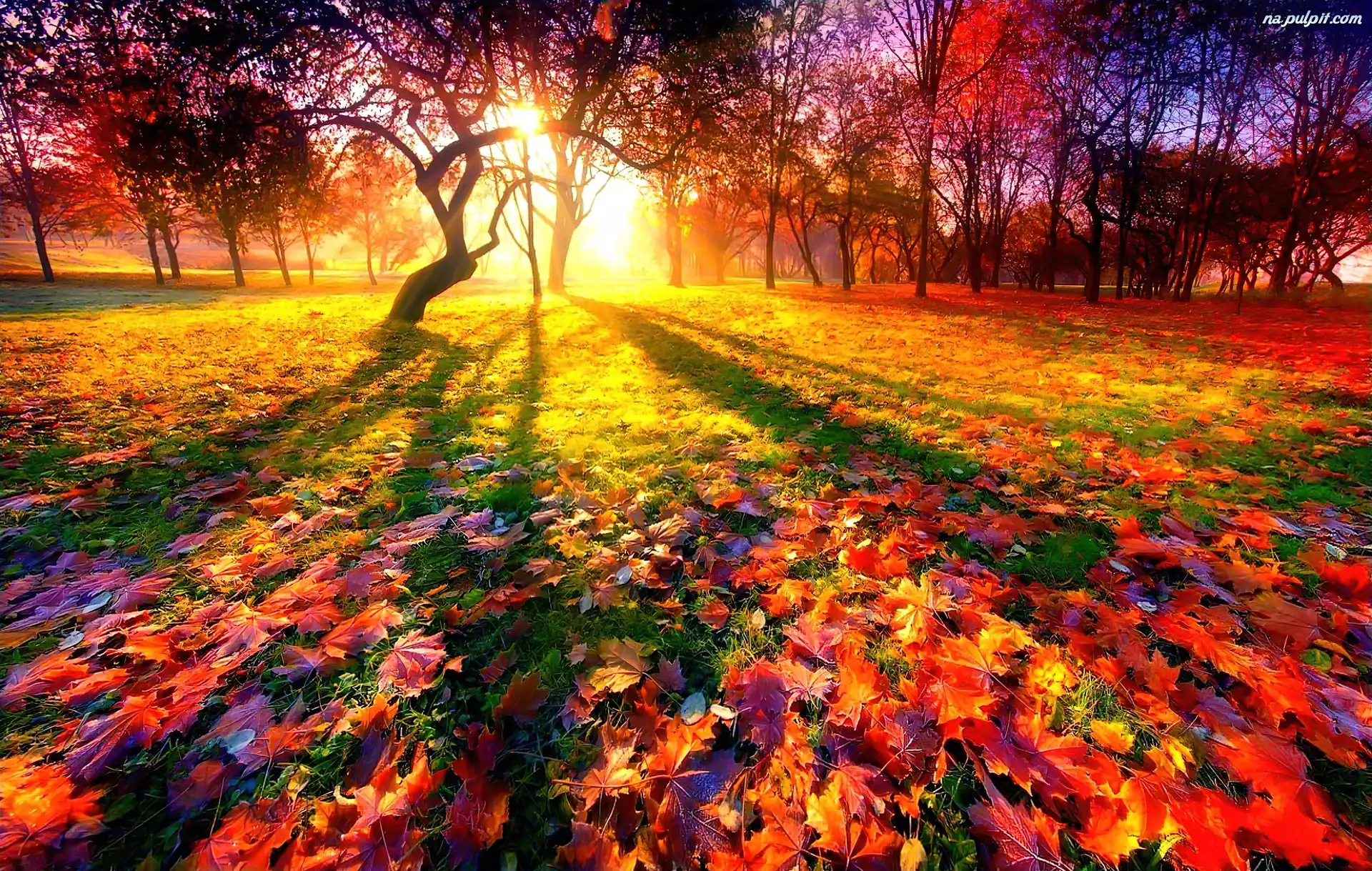 Światło, Jesień, Liście, Drzewa, Przebijające Na Pulpit