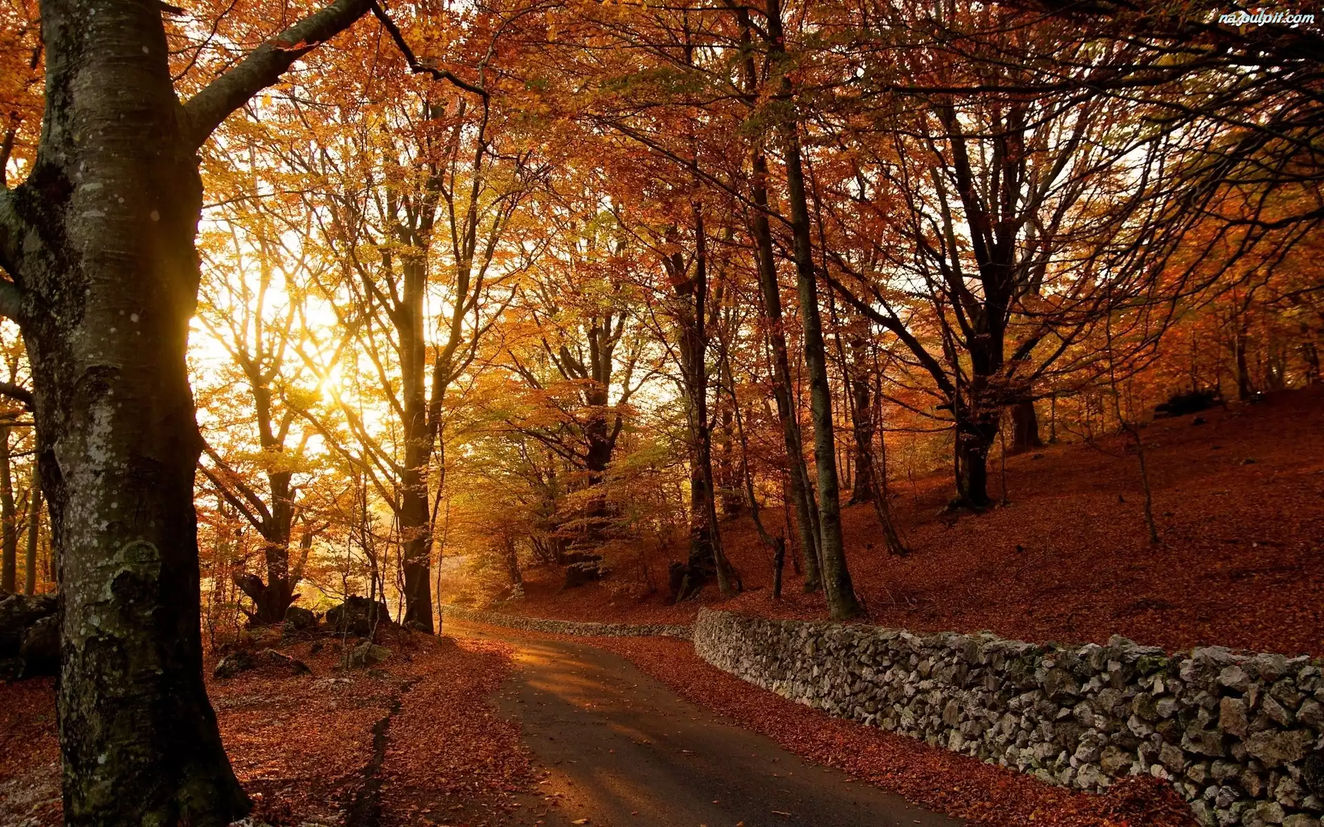 Drzewa, Droga, Murek, Suche, Jesień, Liście Na Pulpit