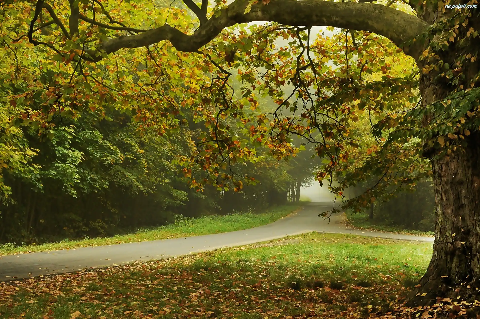 Drzewa, Mgła, Park, Jesień, Drogi Na Pulpit