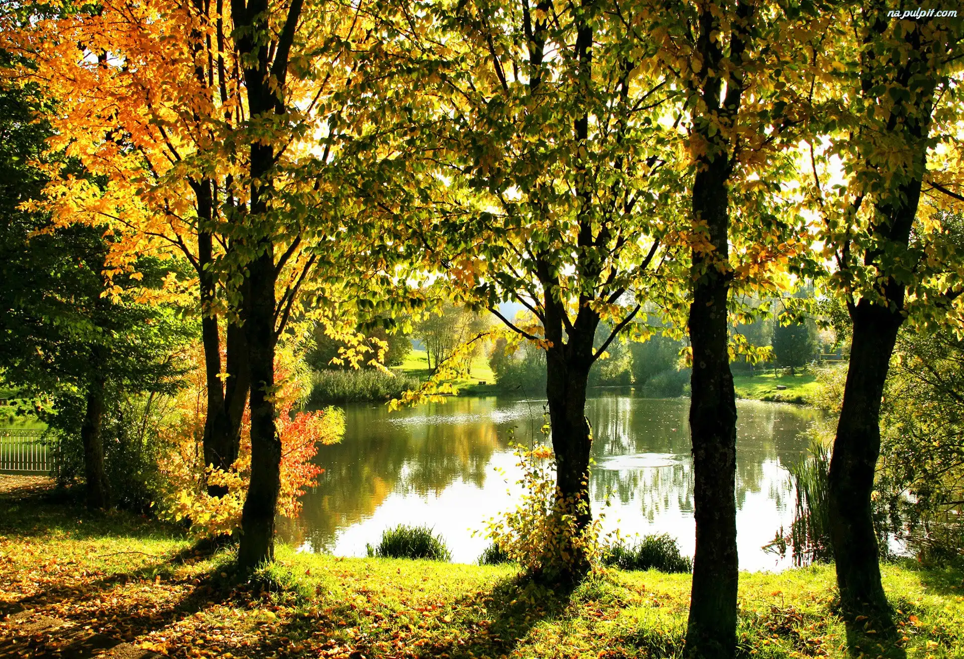 Jesień, Drzewa, Staw Na Pulpit