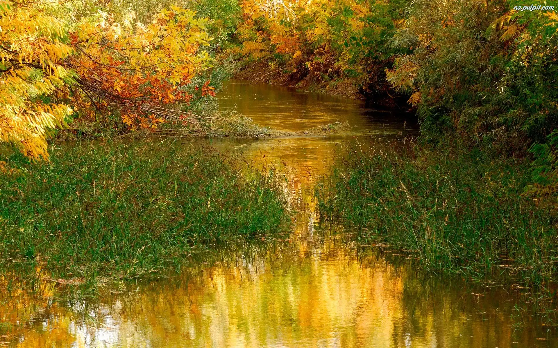 Jesień, Drzewa, Woda Na Pulpit