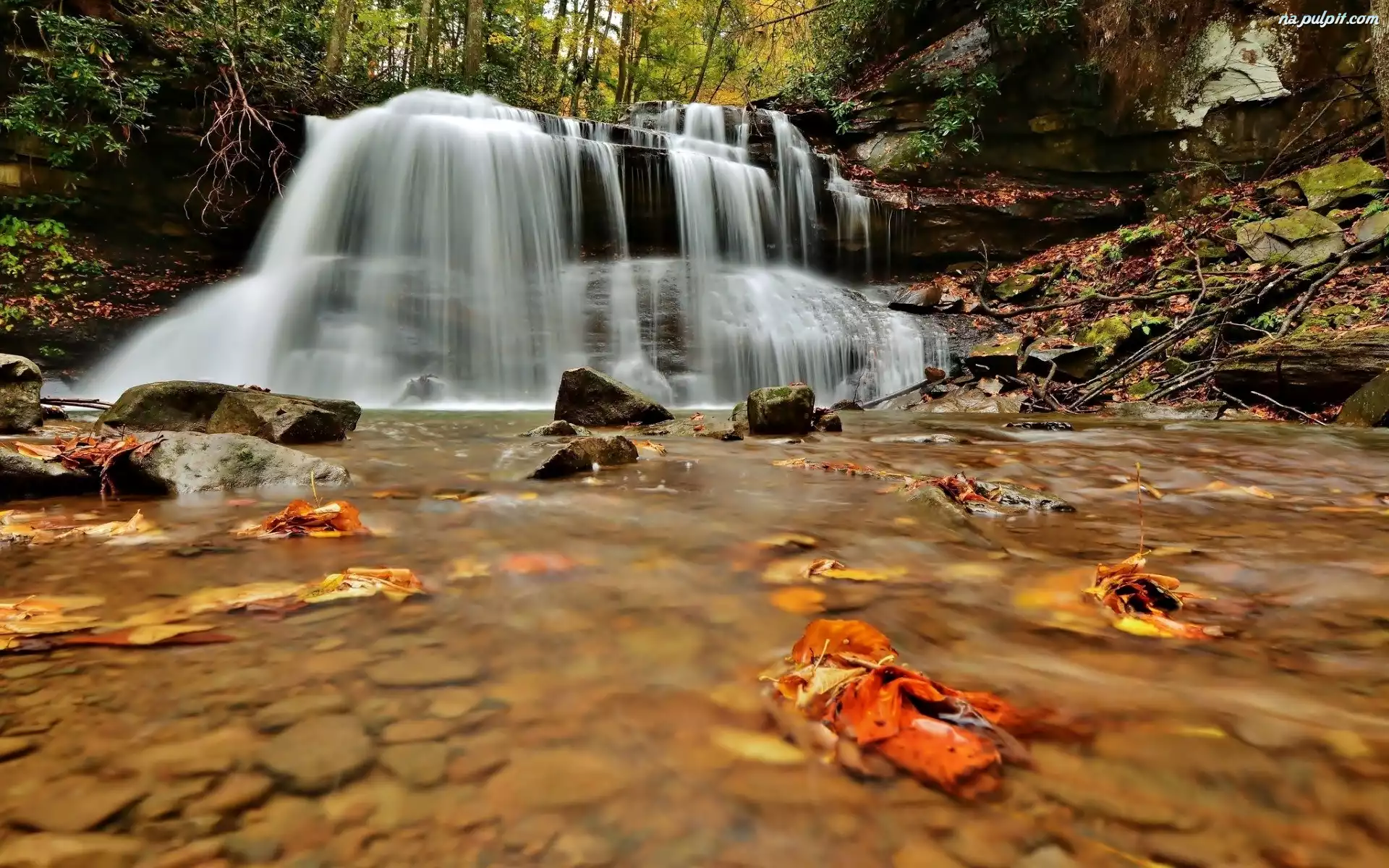 Drzewa, Liście, Wodospad, Jesień, Potok Na Pulpit