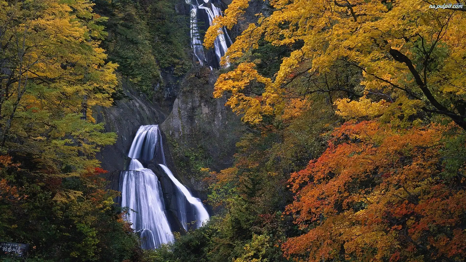 Drzewa, Wodospad, Jesień, Skały Na Pulpit