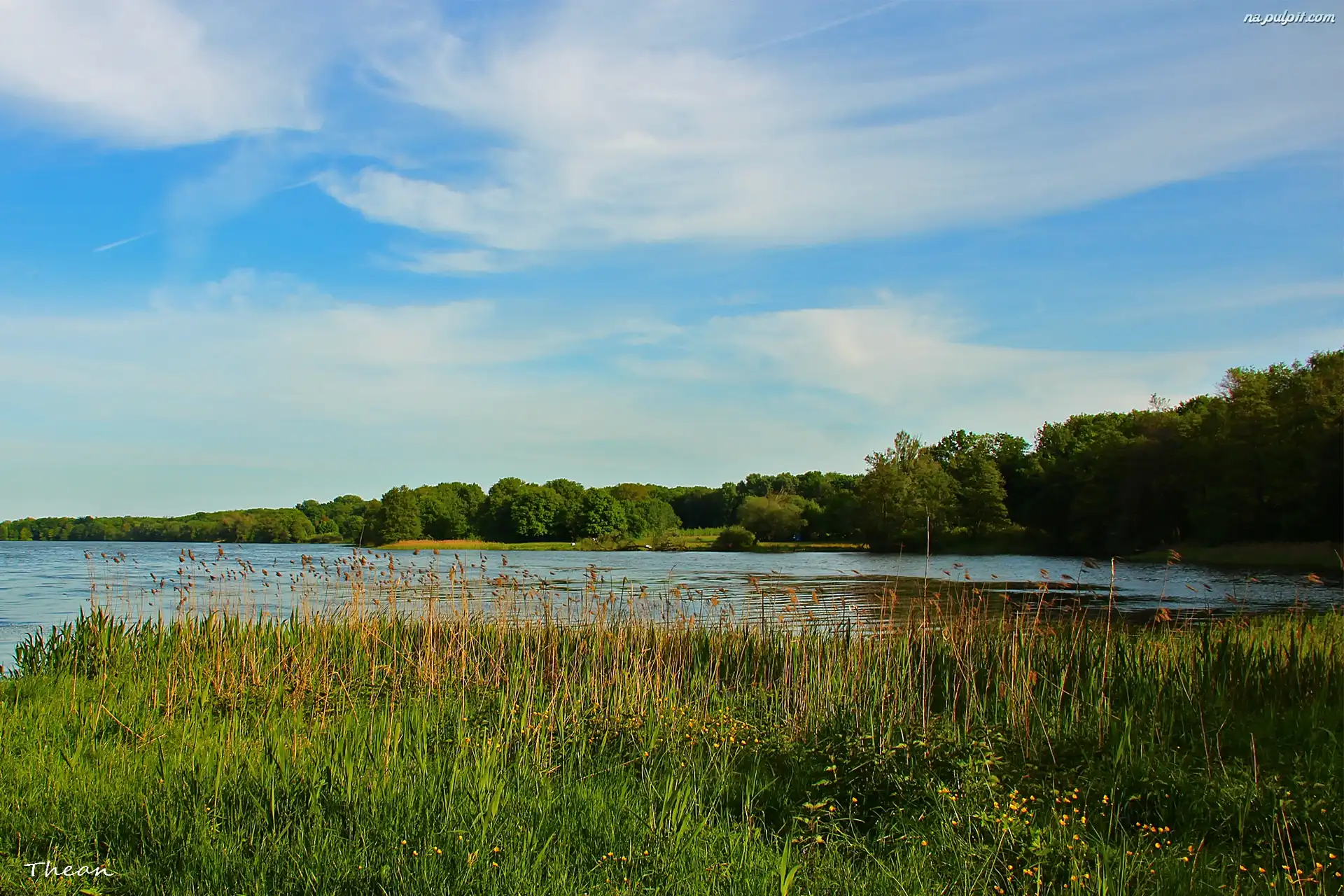 Drzewa, Łąka, Jezioro, Niebo Na Pulpit