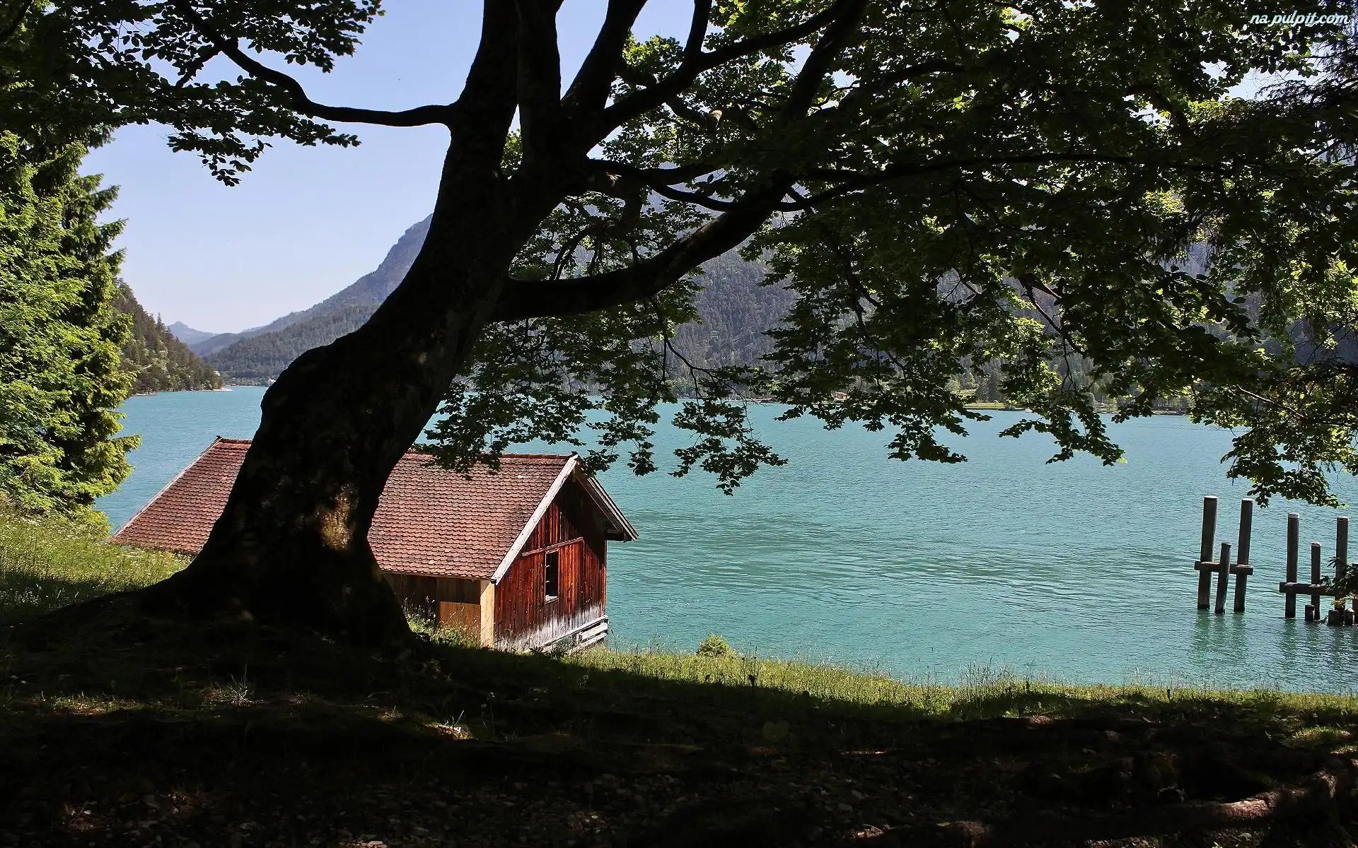 Drzewa, Domek, Jezioro, Góry Na Pulpit