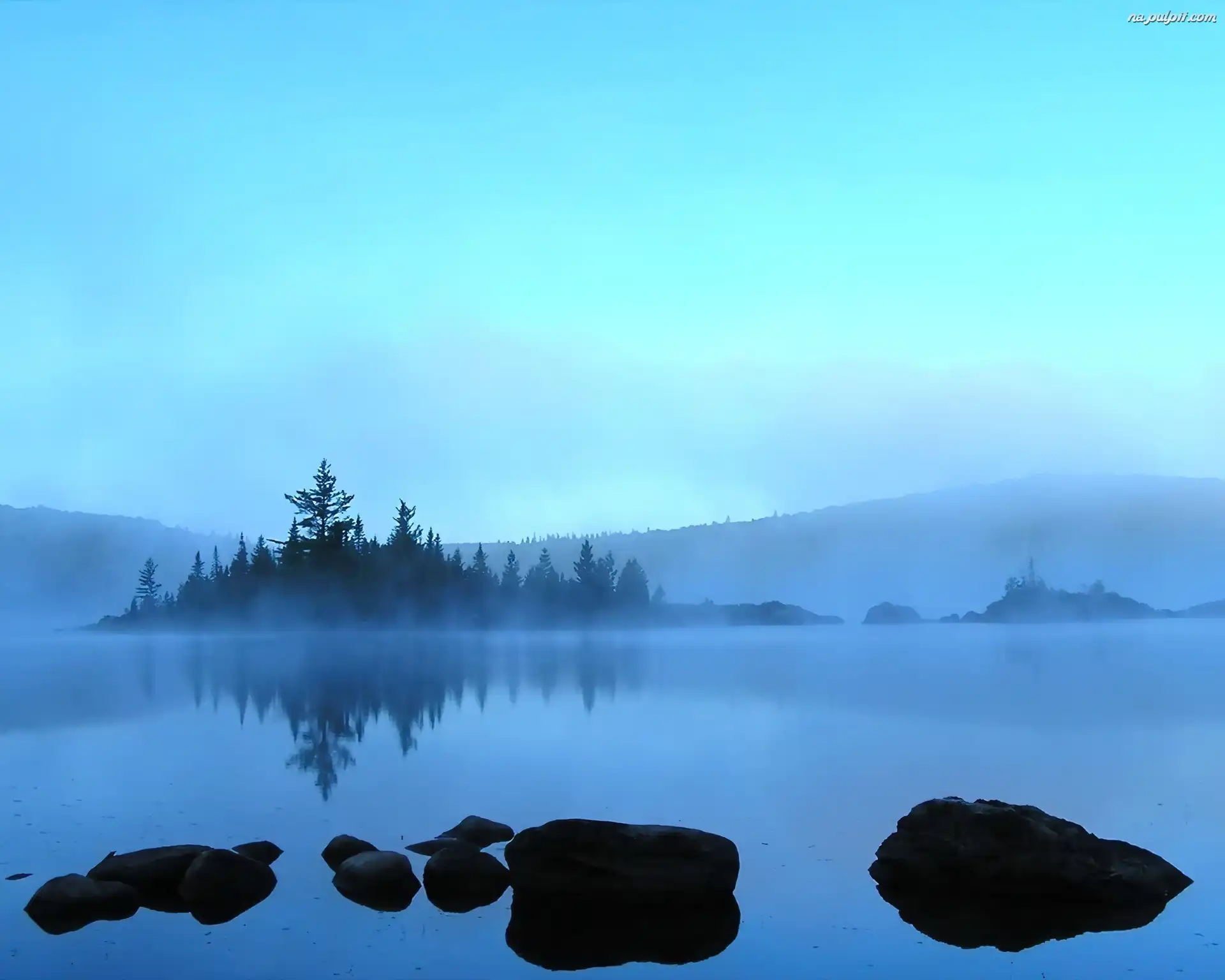 Drzewa, Skały, Kamienie, Jezioro, Wyspa Na Pulpit