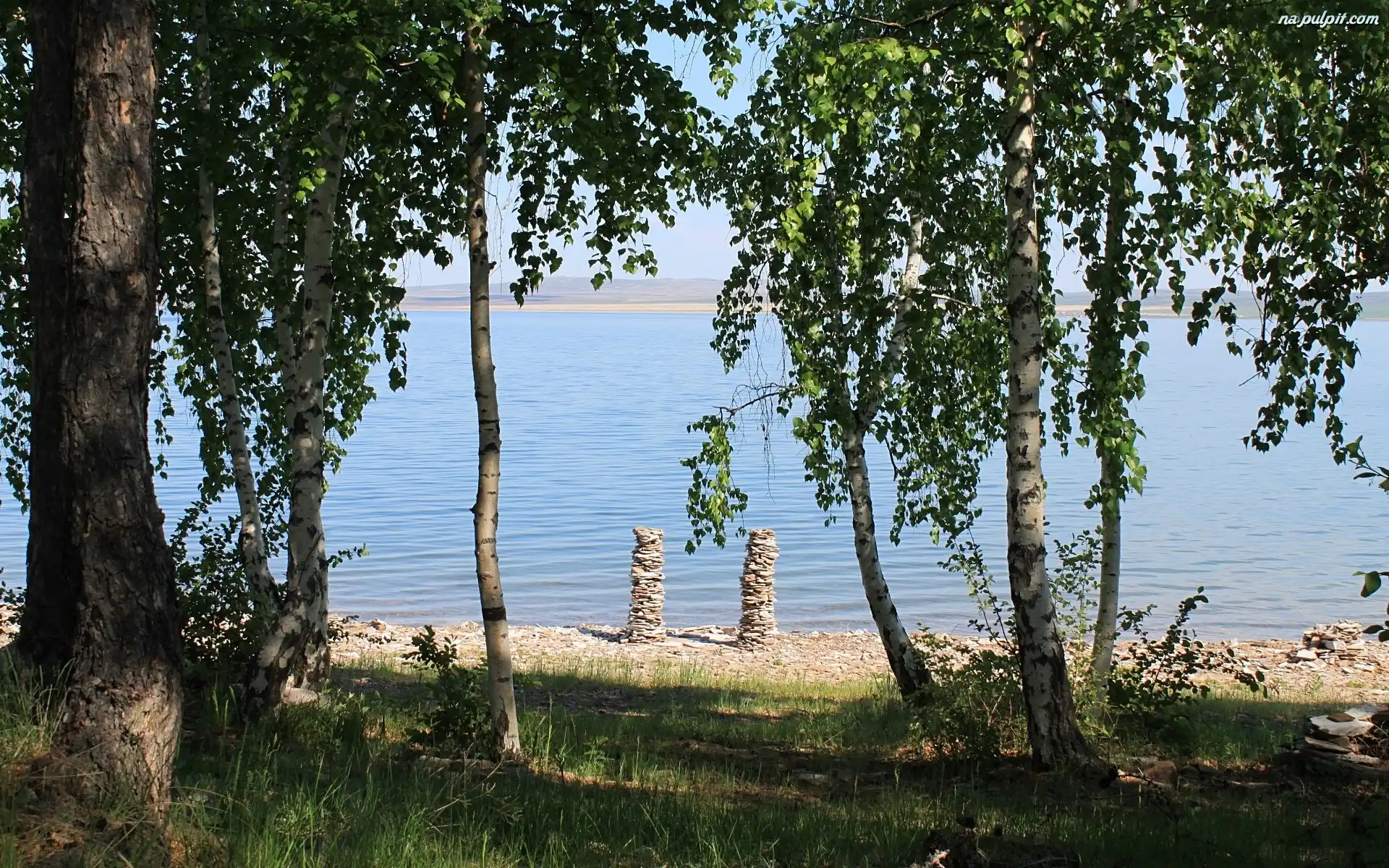 Drzewa, Kamienisty, Jezioro, Brzeg