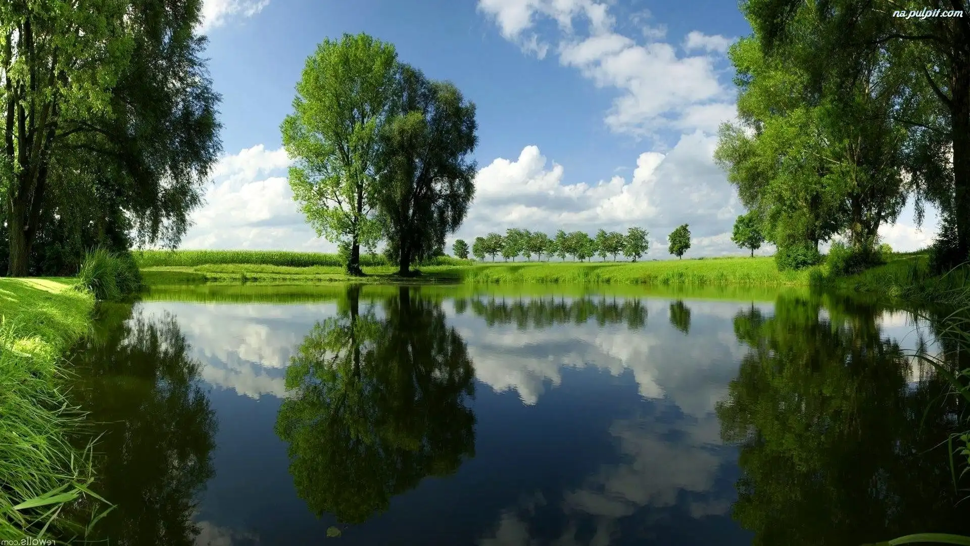 Drzewa, Niebo, Jezioro, Chmury Na Pulpit