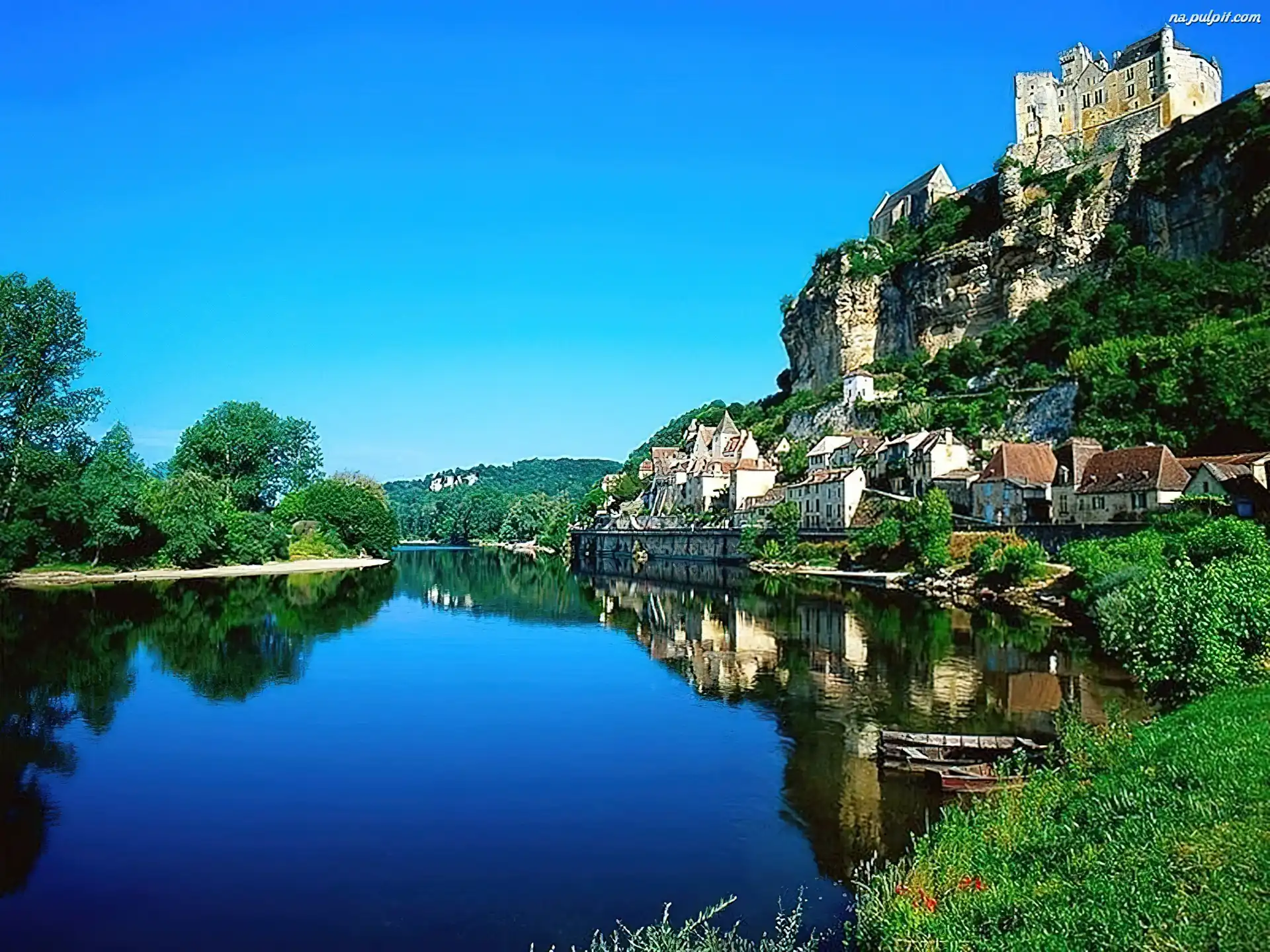 Drzewa Rośliny, Skała, Jezioro, Domy