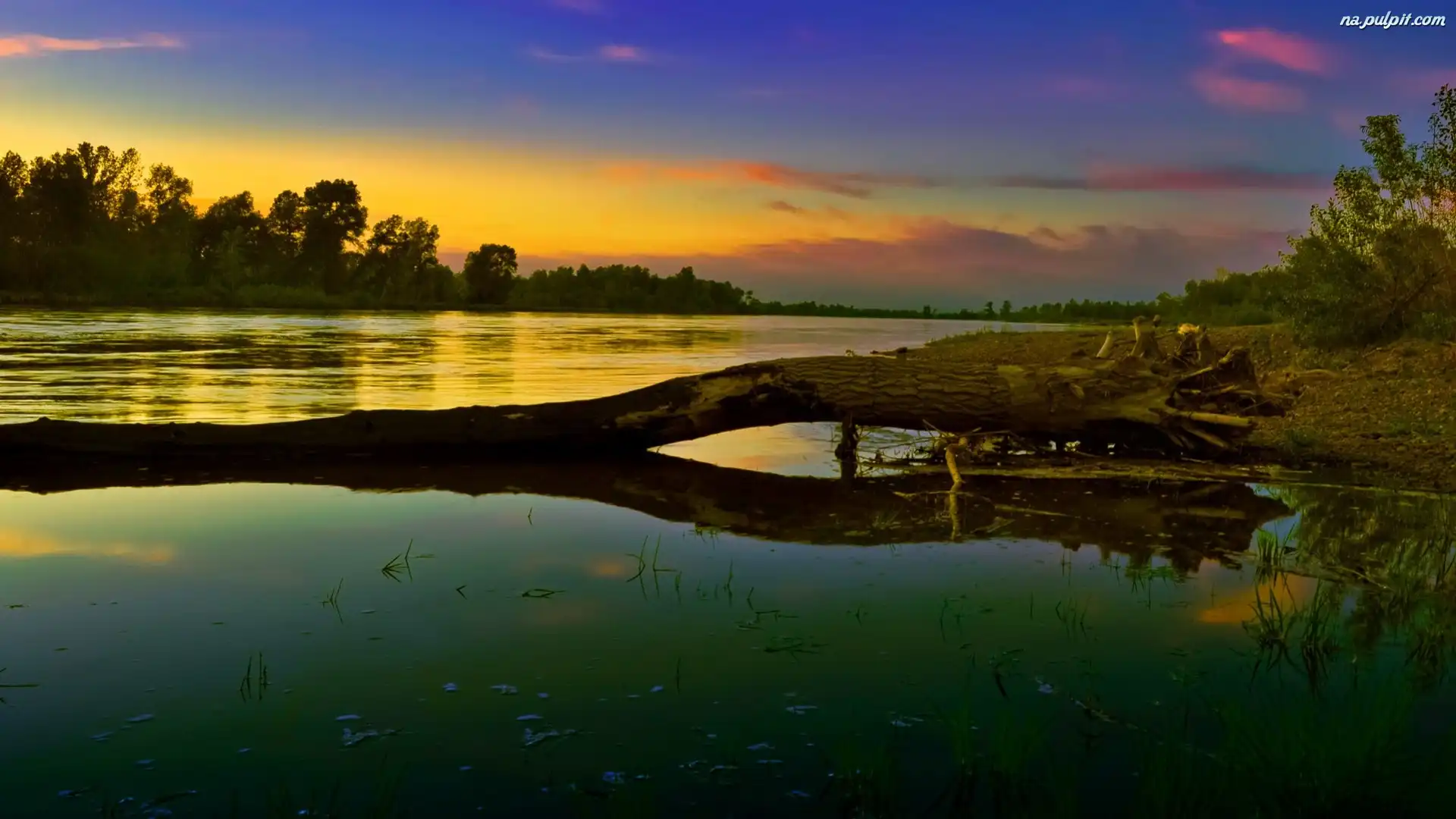 Drzewa, Słońca, Zachód, Jezioro, Konar Na Pulpit