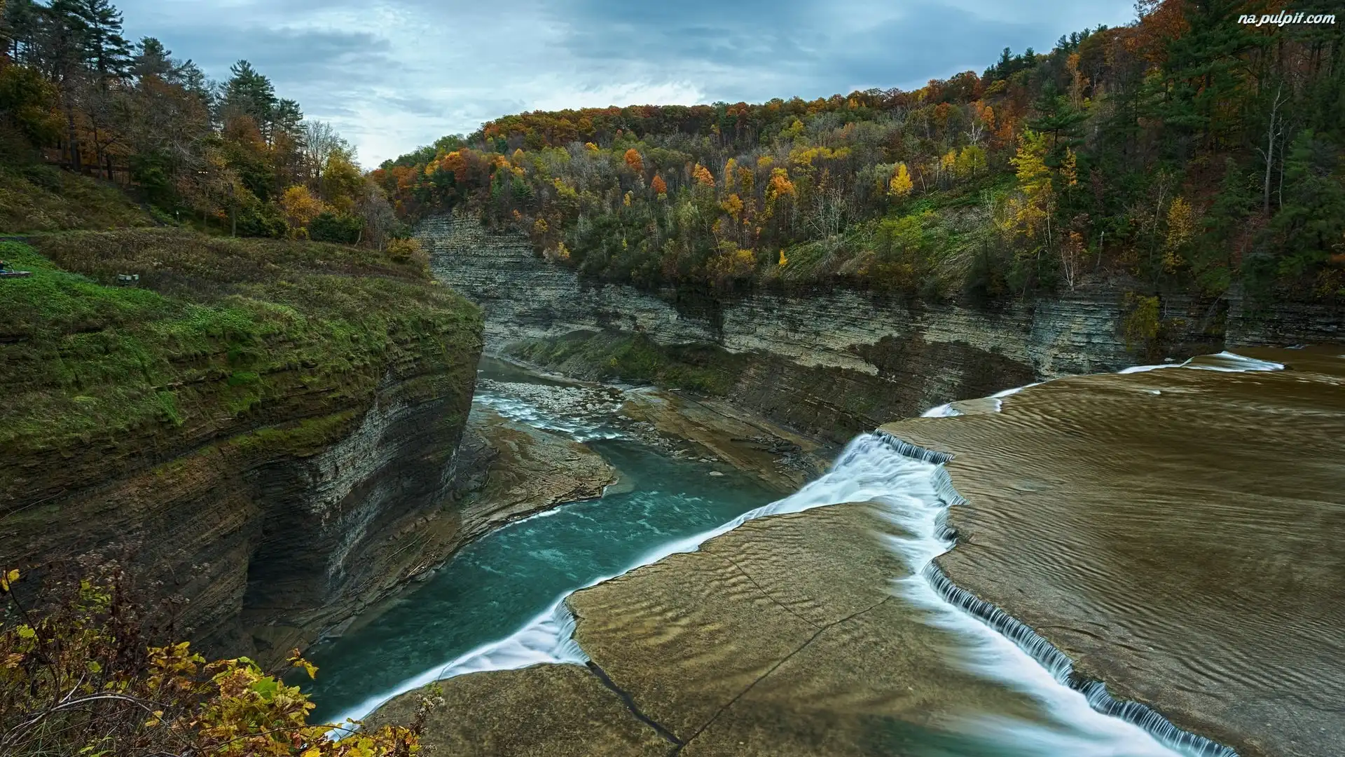 Stan Nowy Jork, Skały, Rzeka Genesee, Park stanowy Letchwortha, Drzewa, Stany Zjednoczone Na Pulpit |