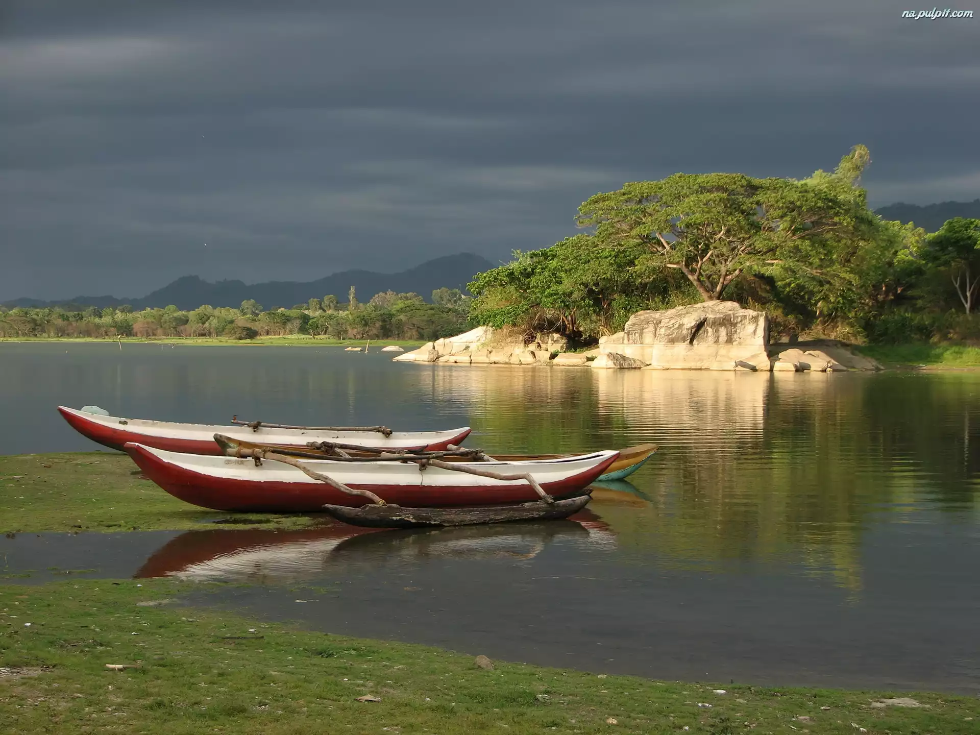 Kajaki, Drzewa, Sri Lanka, Skalisty, Jezioro, Brzeg Na Pulpit