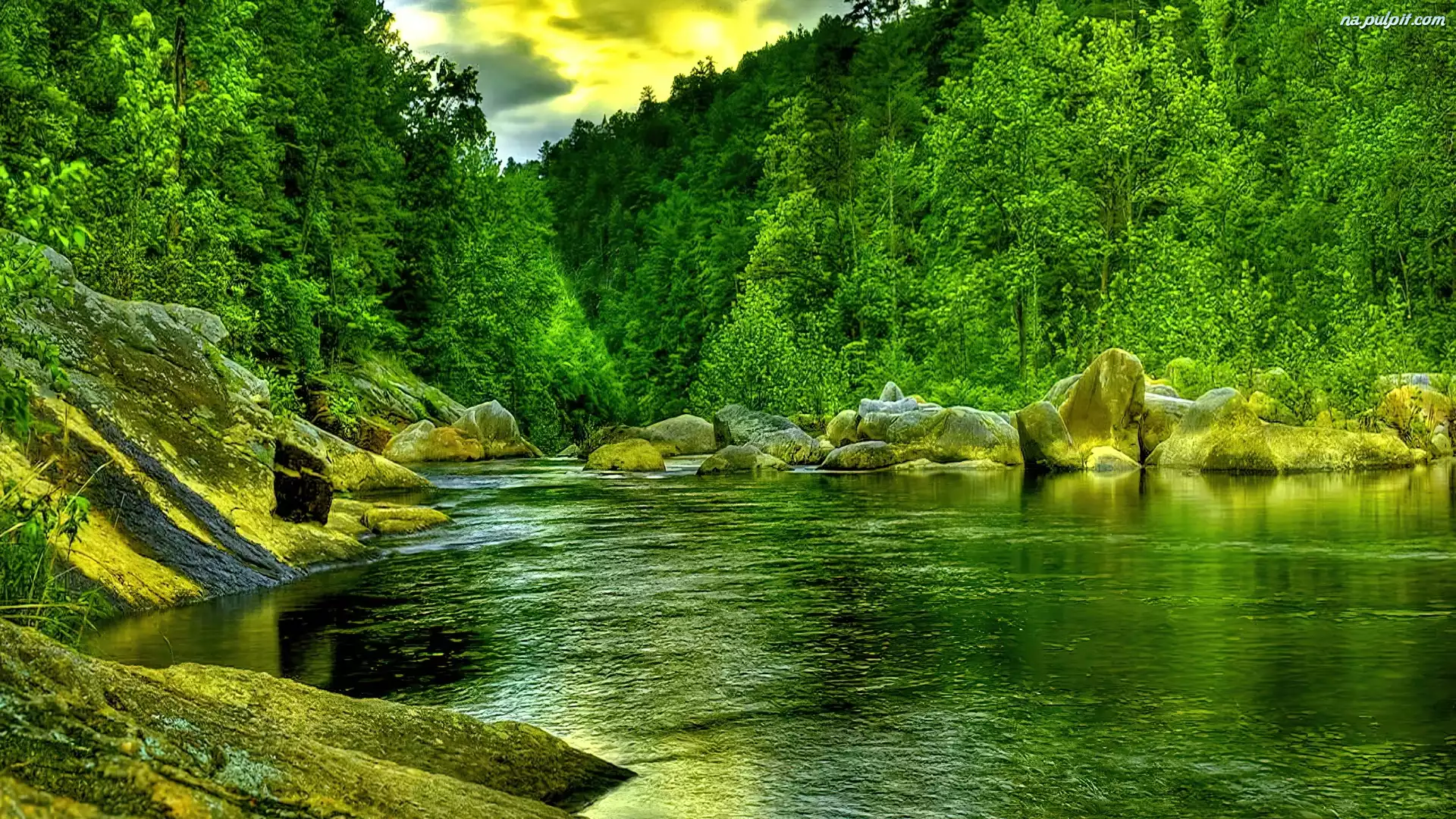 Kamienie, Drzewa, Jezioro Na Pulpit