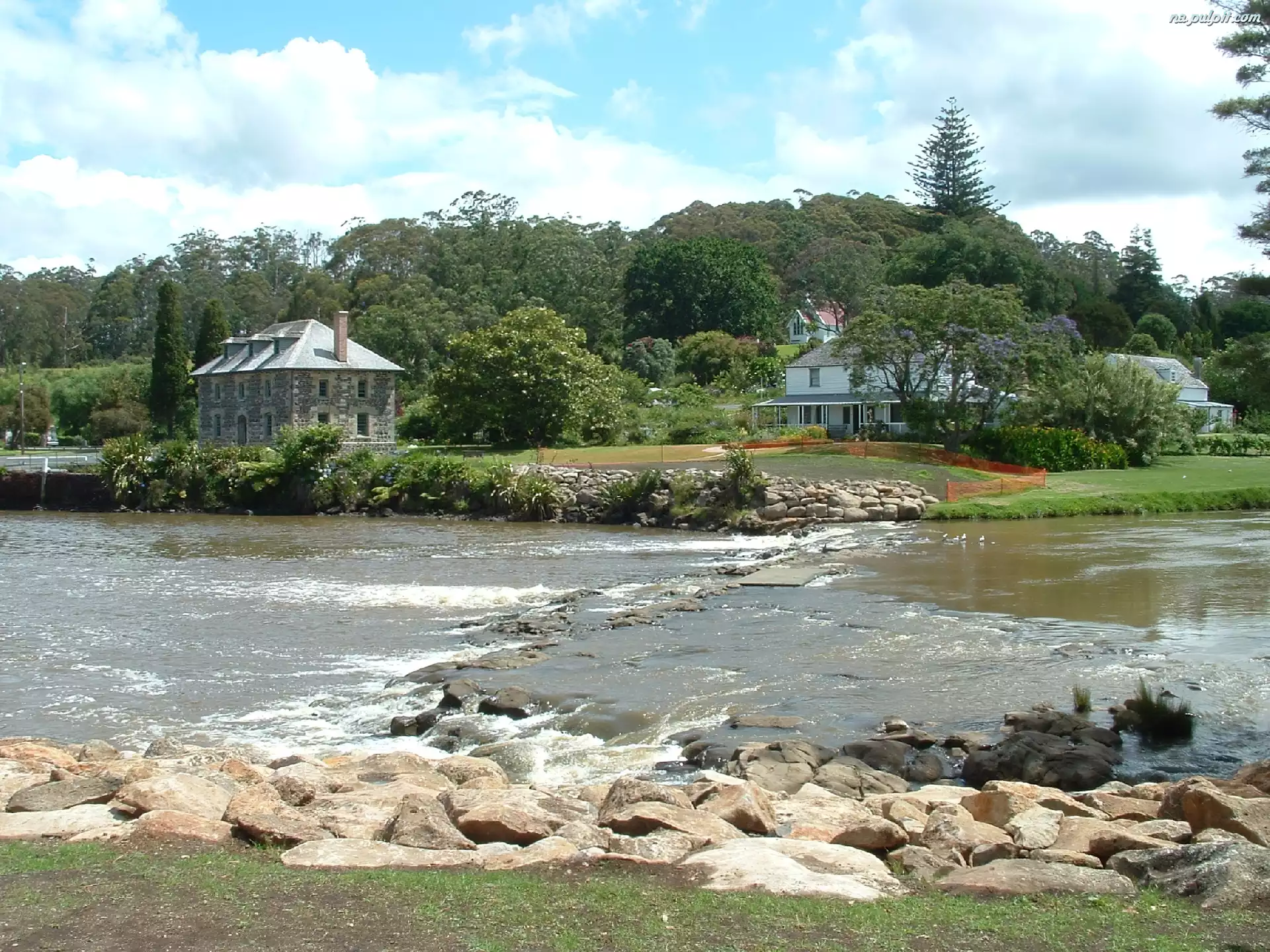 Drzewa, Kamienie, Woda, Kerikeri, Domy Na Pulpit