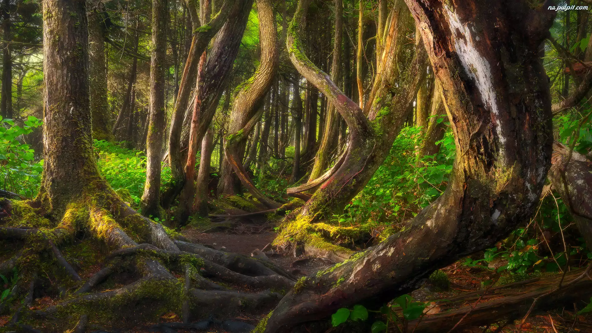 Port Renfrew, Drzewa, Krzywe, Kolumbia Brytyjska, Kanada, Pnie, Las, Botanical Beach Na Pulpit
