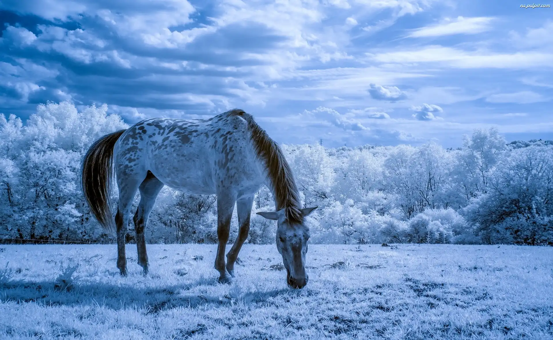 Drzewa, Łąka, Koń, Białe Na Pulpit