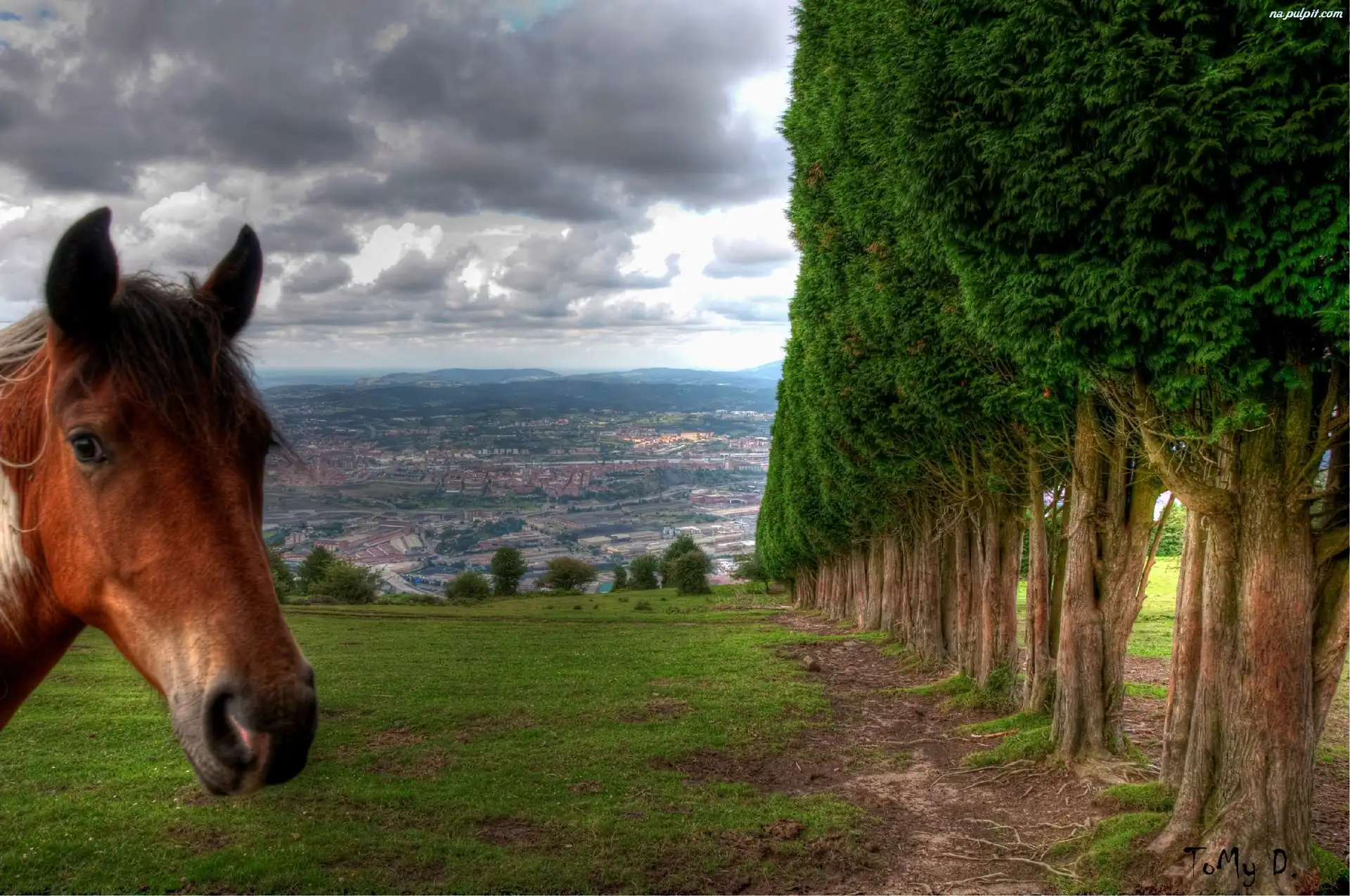 Drzewa, Łeb, Koń, Łąka Na Pulpit