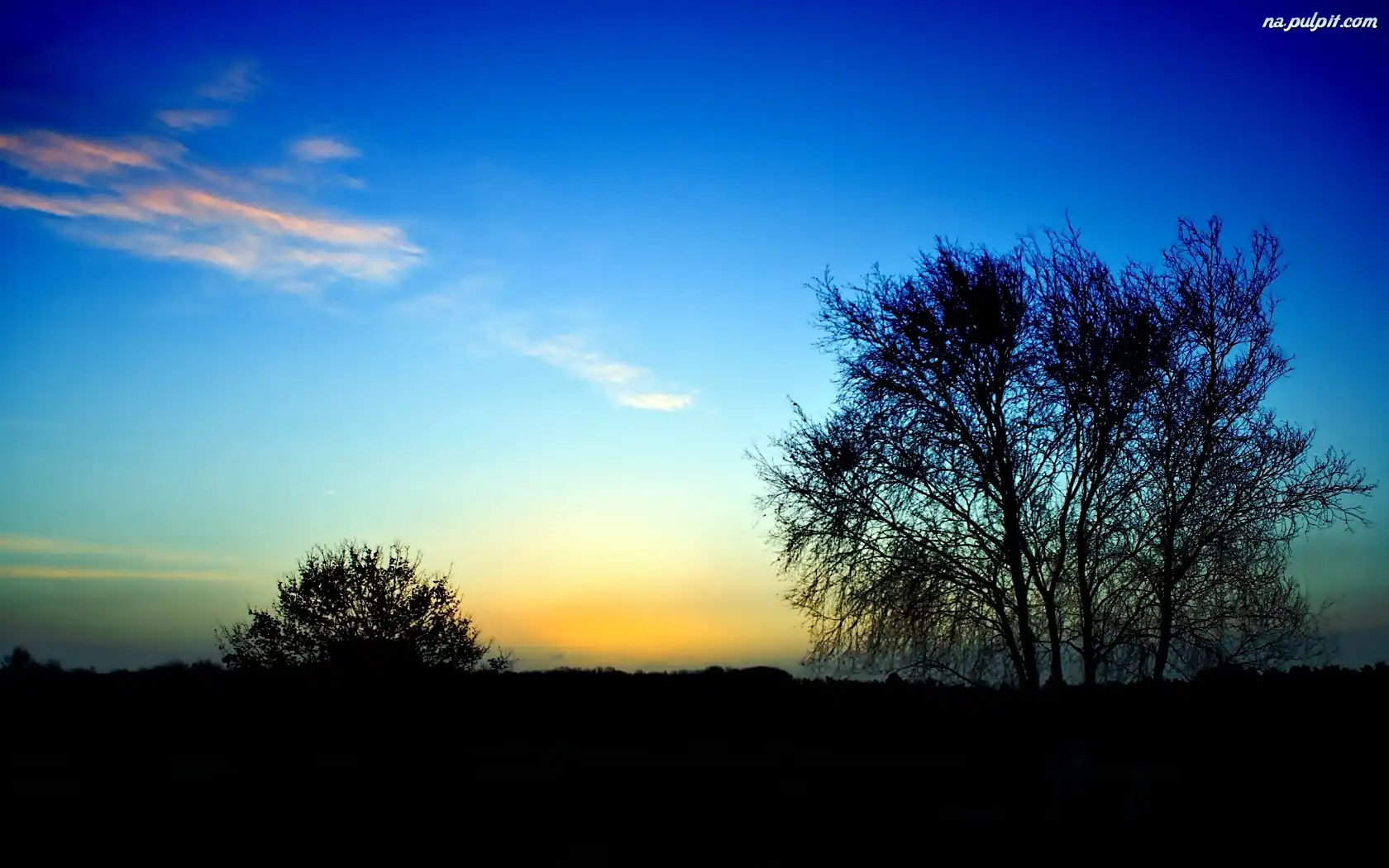 Drzewa, Dnia, Koniec, Niebo Na Pulpit