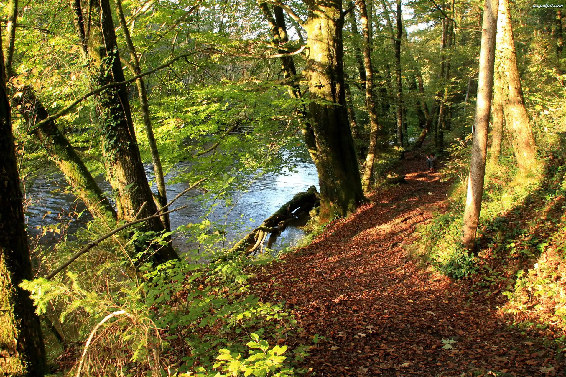 Drzewa, Ścieżka, Las, Rzeka Na Pulpit