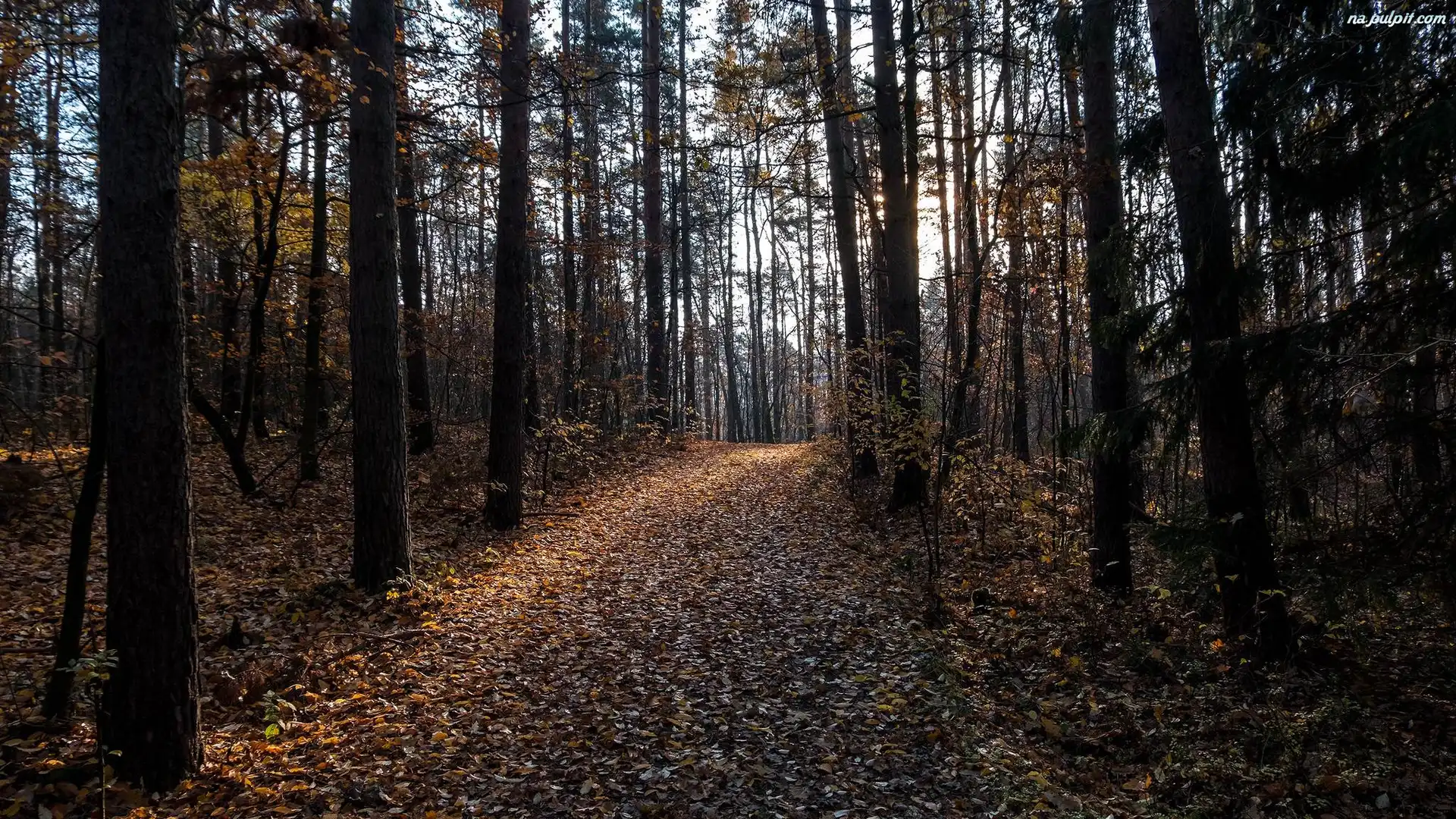 Drzewa, Opadłe, Droga, Las, Liście Na Pulpit