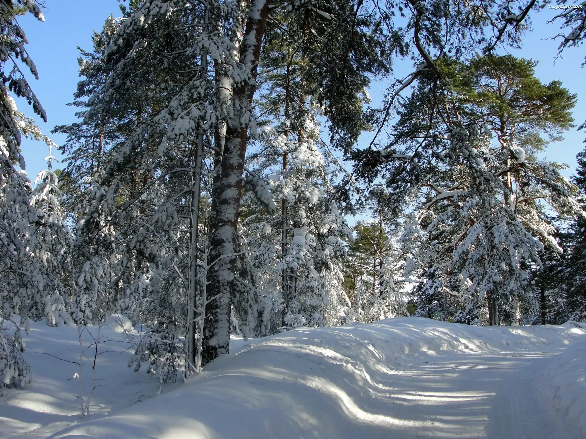 Drzewa, Droga, Las, Ośnieżone Na Pulpit