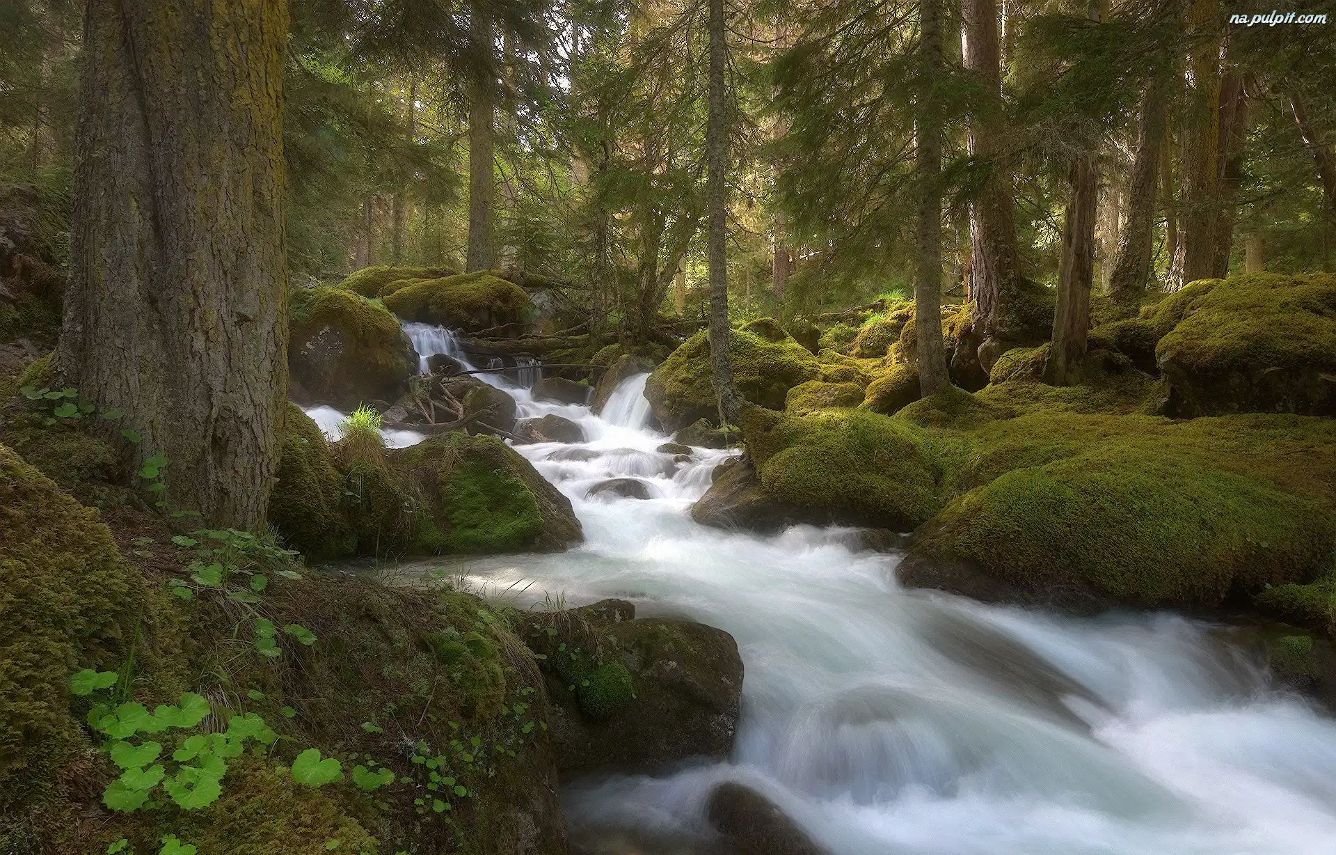 Drzewa, Omszałe, Kamienie, Strumyk, Las, Rzeka Na Pulpit