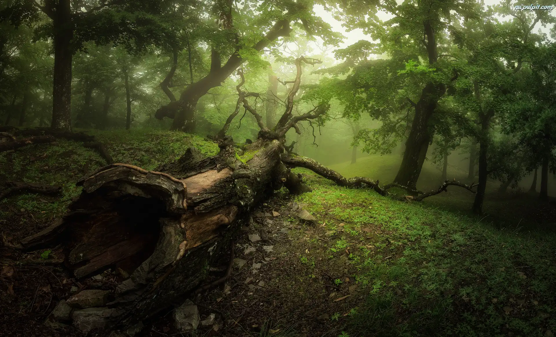 Drzewa, Pień, Mgła, Powalone, Las, Drzewo Na Pulpit