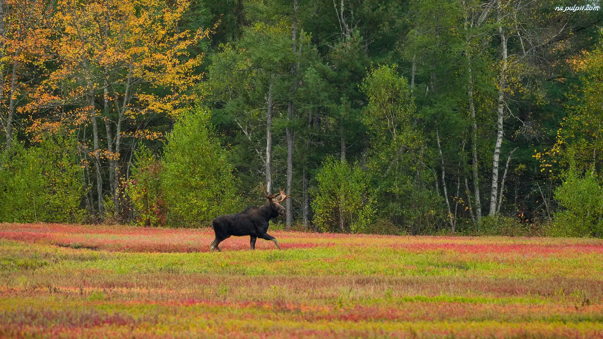 Drzewa, Jesień, Łoś, Łąka, Las, Polana