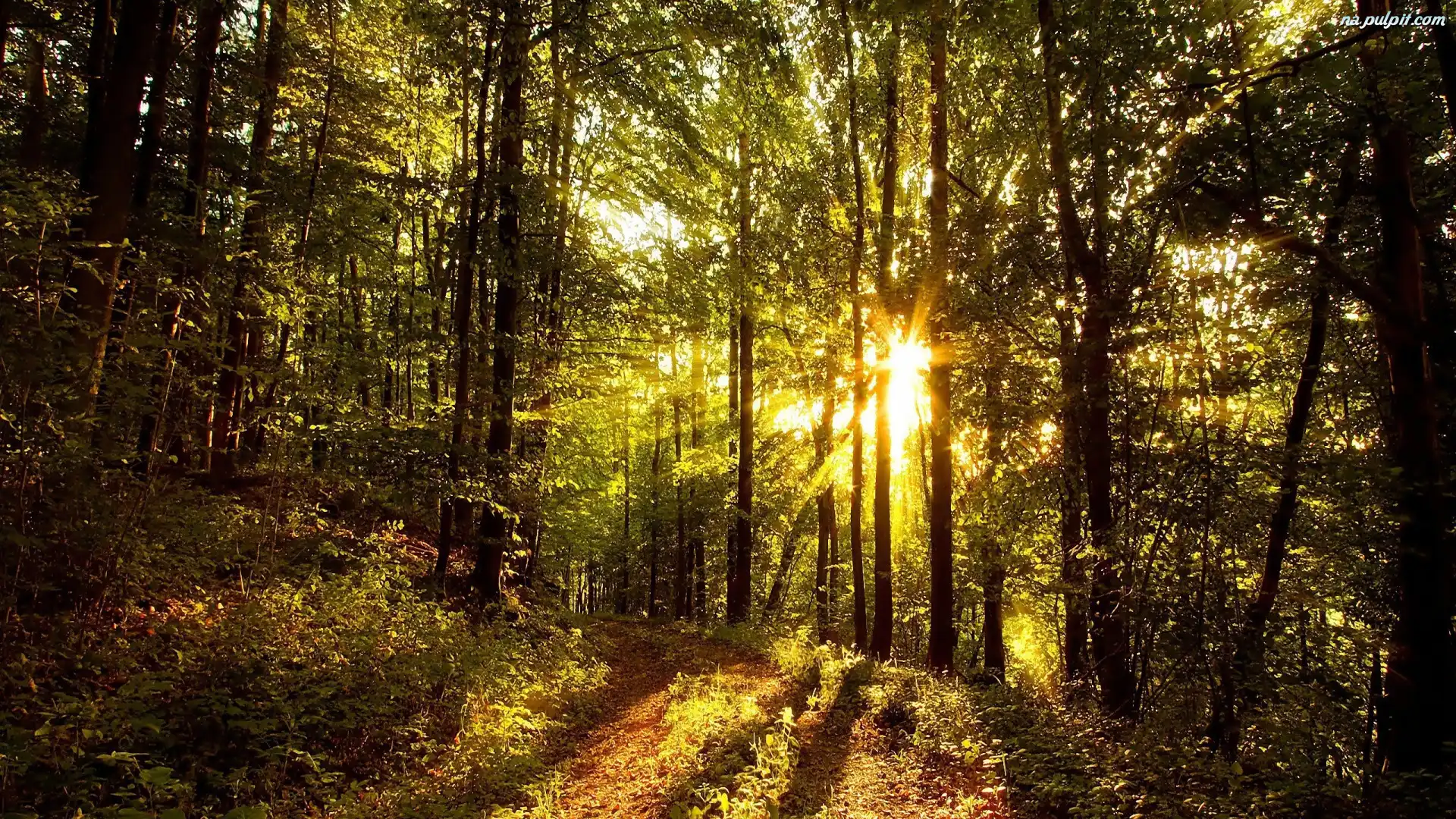 Drzewa, Słońce, Promienie, Ścieżka, Las, Liście Na Pulpit