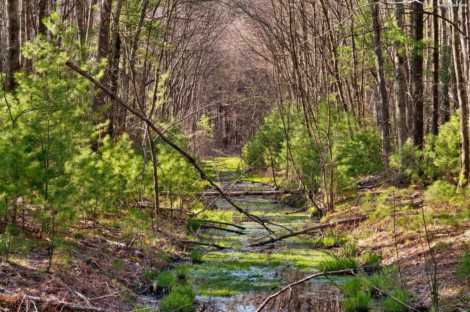 Drzewa, Rzeczka, Las, Powalone Na Pulpit