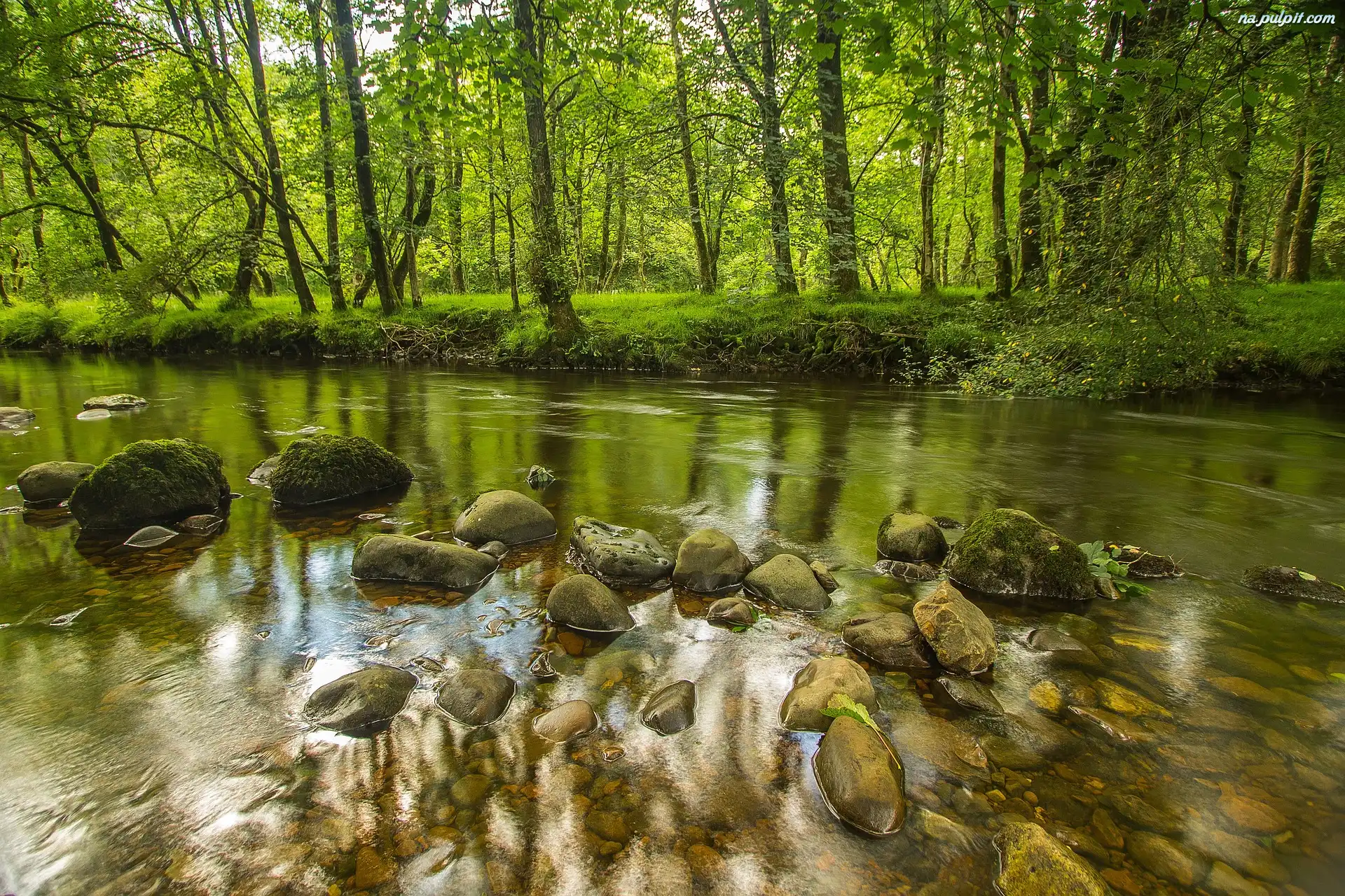 Kamienie, Drzewa, Las, Roślinność, Rzeka Na Pulpit