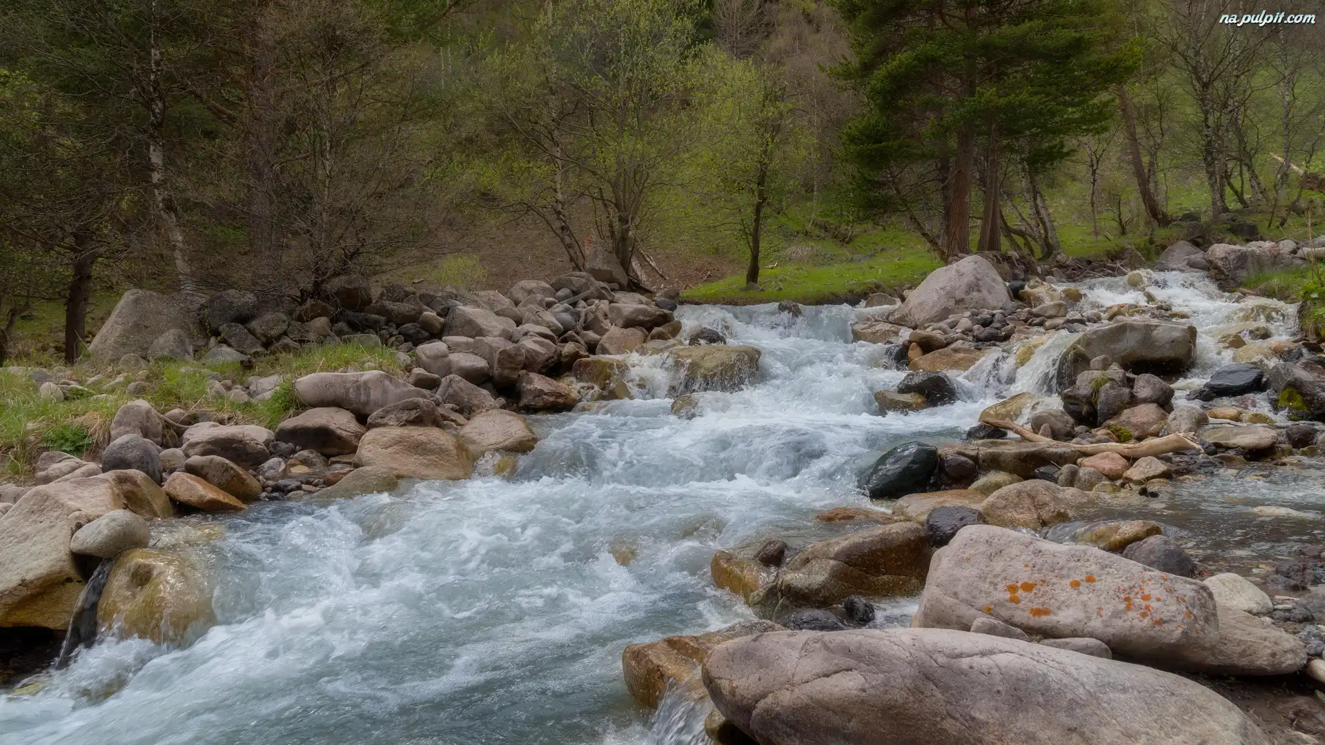 Drzewa, Strumień, Rzeka, Las, Kamienie Na Pulpit