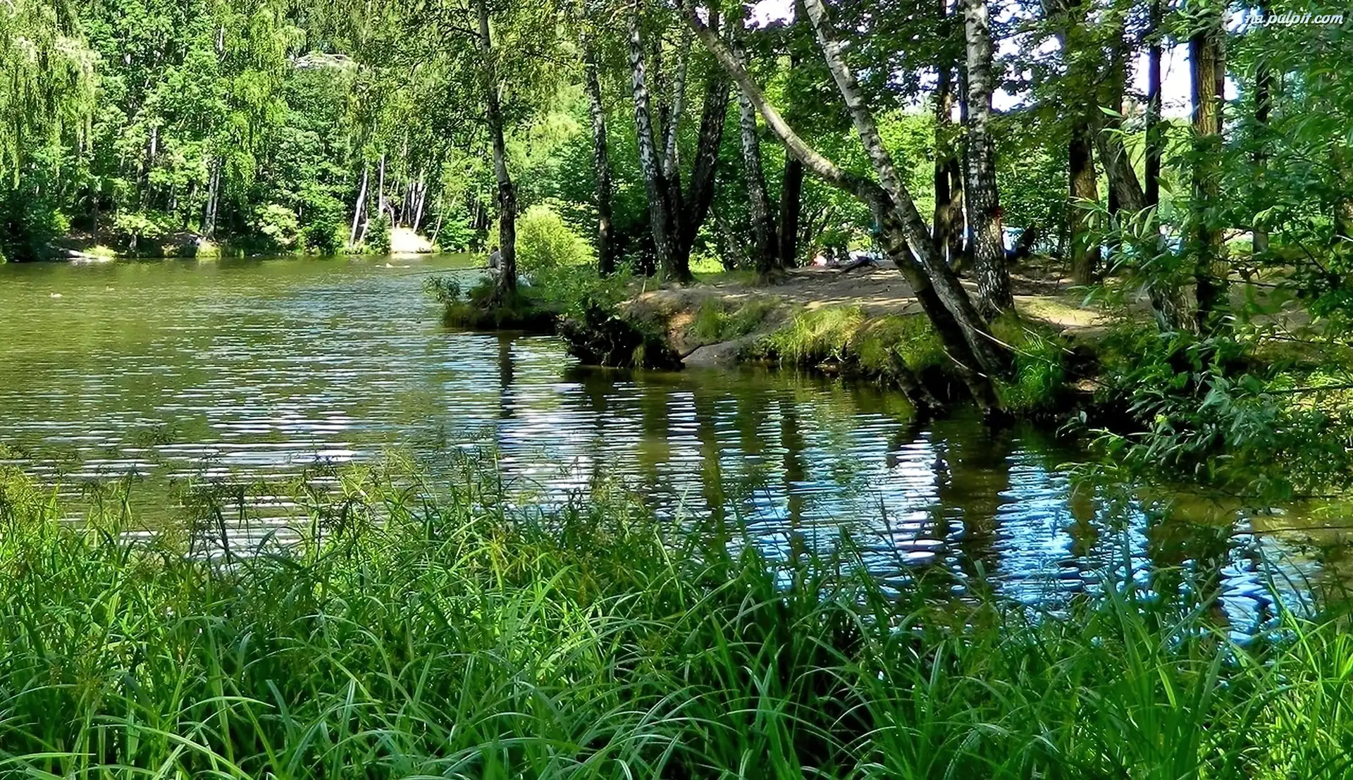 Drzewa, Rzeka, Lasek, Trawa Na Pulpit