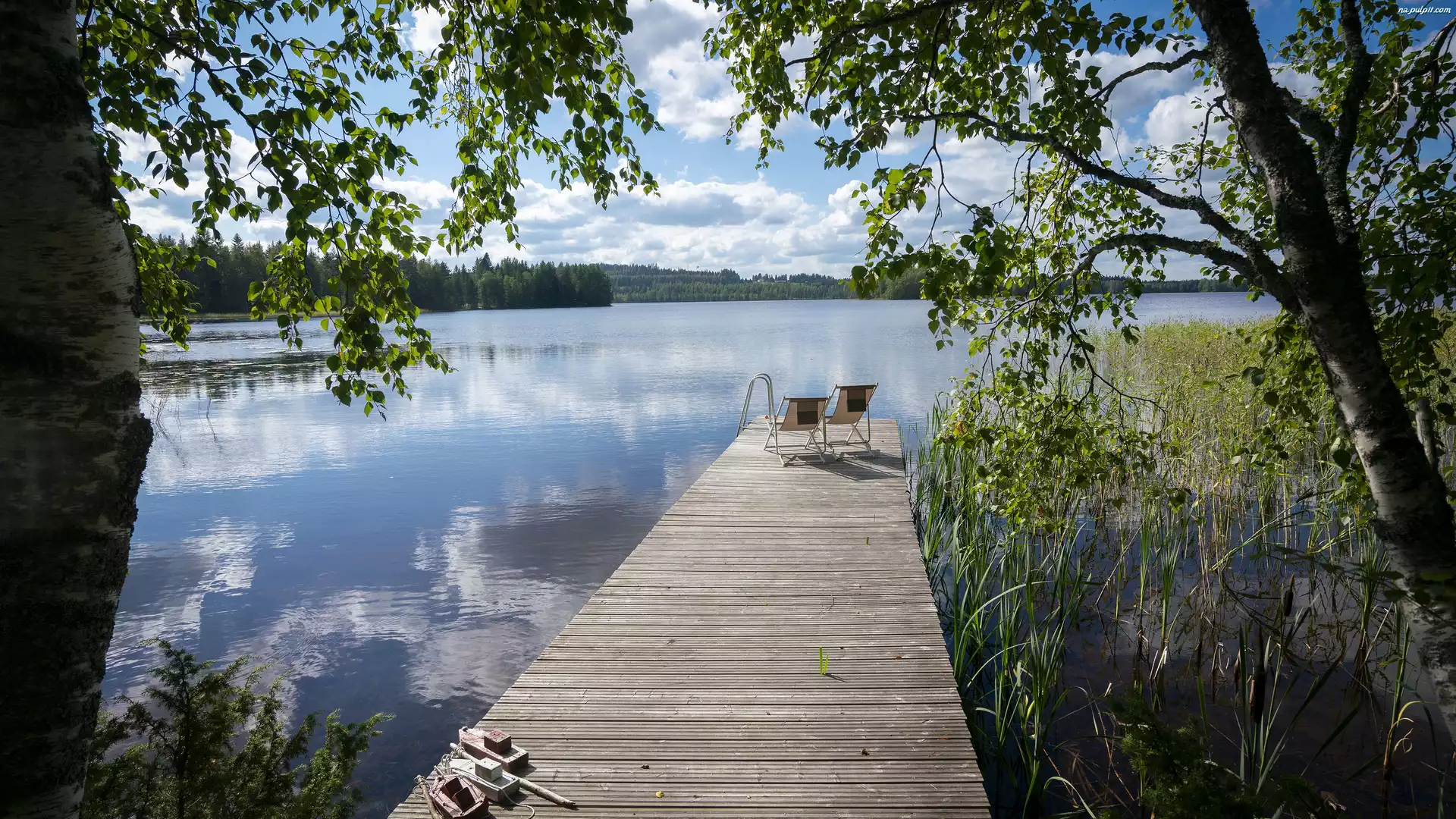 Leżaki, Jezioro, Pomost, Drzewa Na Pulpit