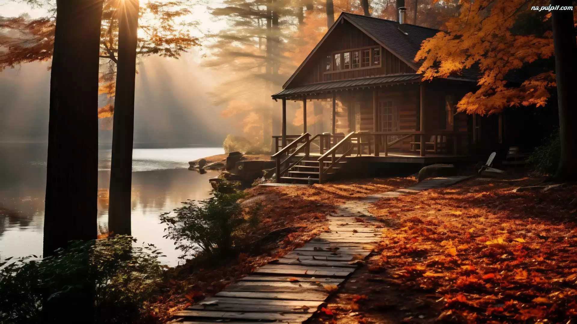 Opadłe, Jesień, Jezioro, Drzewa, Dom, Liście Na Pulpit