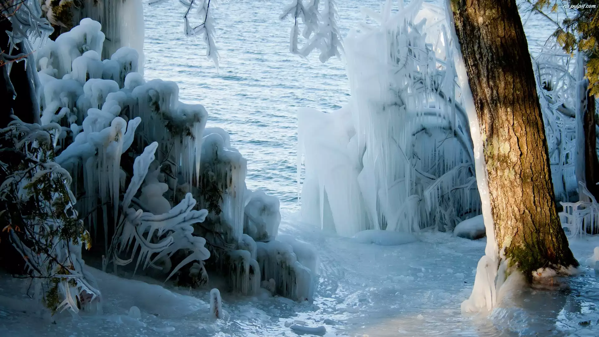 Lód, Drzewa, Jezioro Na Pulpit