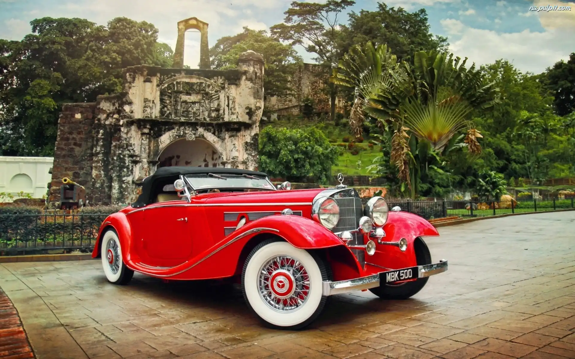Drzewa, Czerwony, Mercedes, Parking Na Pulpit