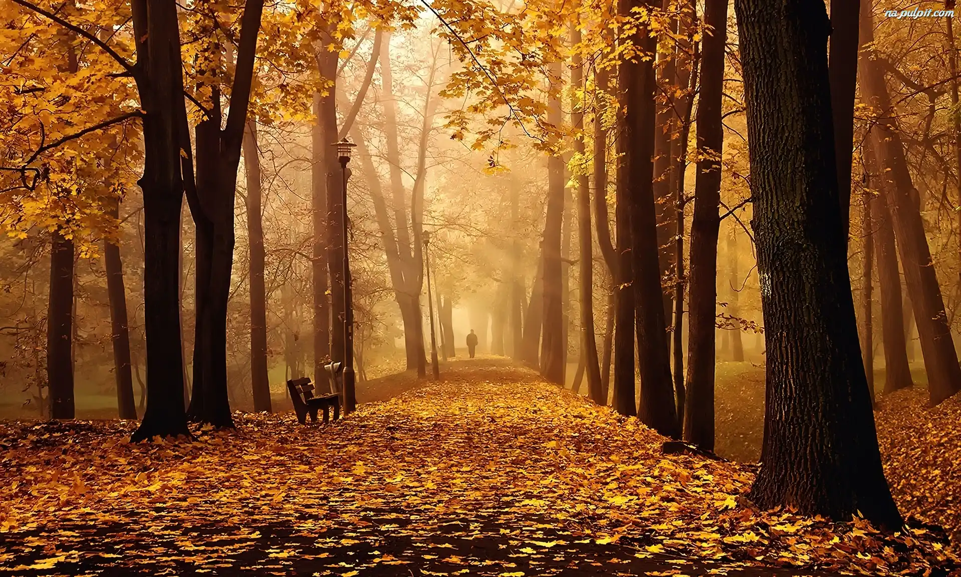 Ławka, Mgła, Liście, Drzewa, Aleja Na Pulpit