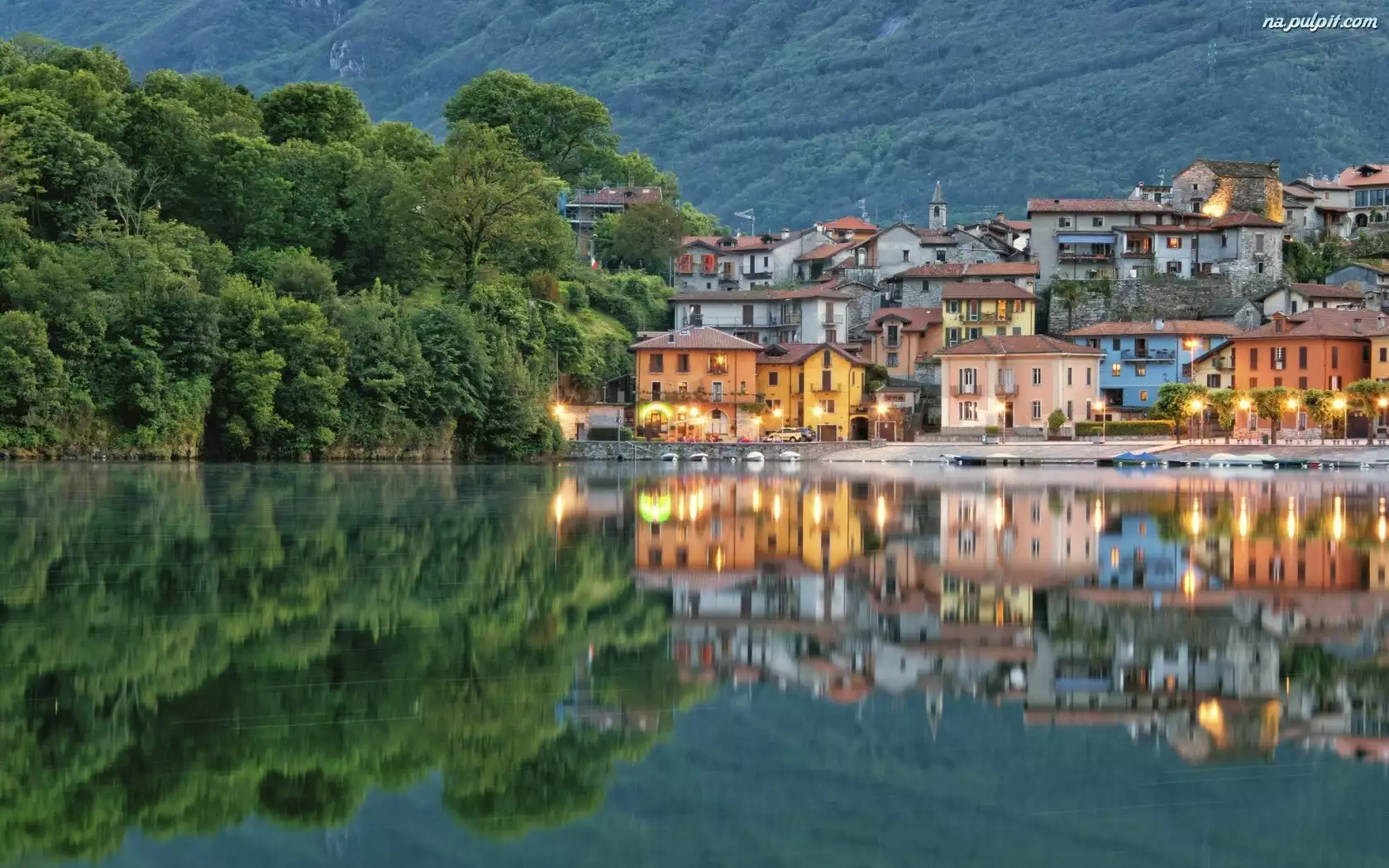Drzewa, Włochy, Mergozzo, Miasteczko, Morze Na Pulpit