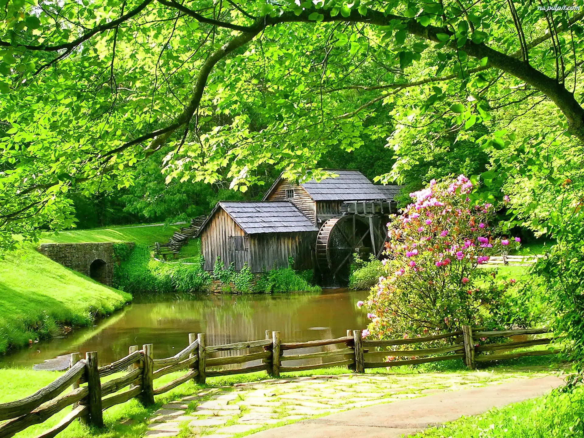 Drzewa, Wodny, Młyn, Rzeczka Na Pulpit
